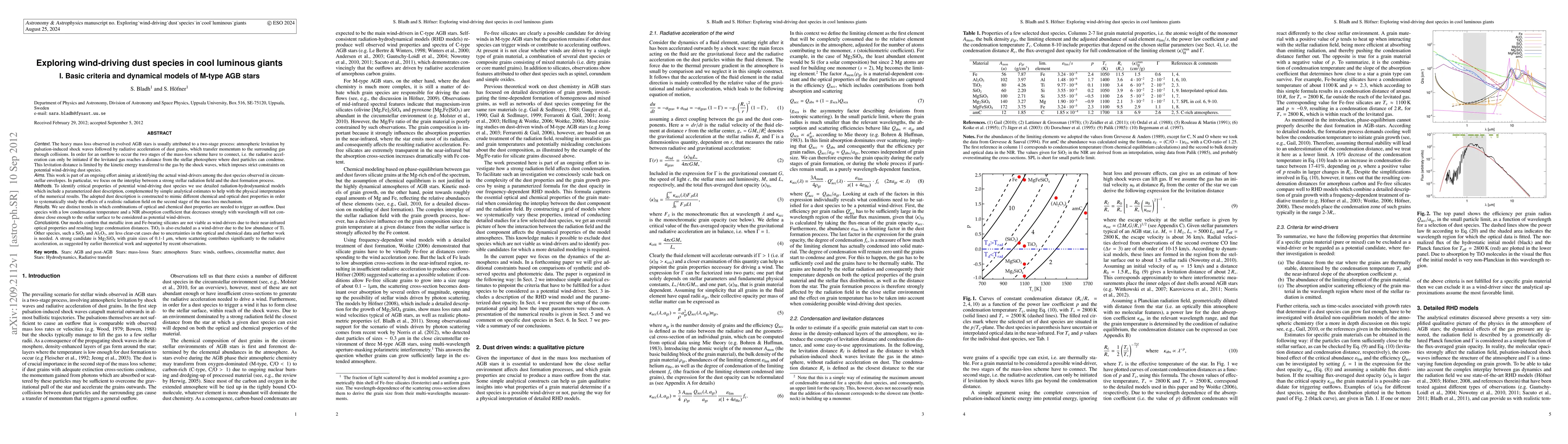 This work is part of an ongoing effort aiming at identifying the actual wind-drivers among the dust species observed in circumstellar envelopes. In particular, we focus on the interplay between a strong stellar radiation field and the dust formation process. To identify critical properties of potential wind-driving dust species we use detailed radiation-hydrodynamical models which include a parameterized dust description, complemented by simple analytical estimates to help with the physical interpretation of the numerical results. The adopted dust description is constructed to mimic different chemical and optical dust properties in order to systematically study the effects of a realistic radiation field on the second stage of the mass loss mechanism. We see distinct trends in which combinations of optical and chemical dust properties are needed to trigger an outflow. Dust species with a low condensation temperature and a NIR absorption coefficient that decreases strongly with wavelength will not condense close enough to the stellar surface to be considered as potential wind-drivers. Our models confirm that metallic iron and Fe-bearing silicates are not viable as wind-drivers due to their near-infrared optical properties and resulting large condensation distances. TiO2 is also excluded as a wind-driver due to the low abundance of Ti. Other species, such a SiO2 and Al2O3, are less clear-cut cases due to uncertainties in the optical and chemical data and further work is needed. A strong candidate is Mg2SiO4 with grain sizes of 0.1-1 micron, where scattering contributes significantly to the radiative acceleration, as suggested by earlier theoretical work and supported by recent observations.