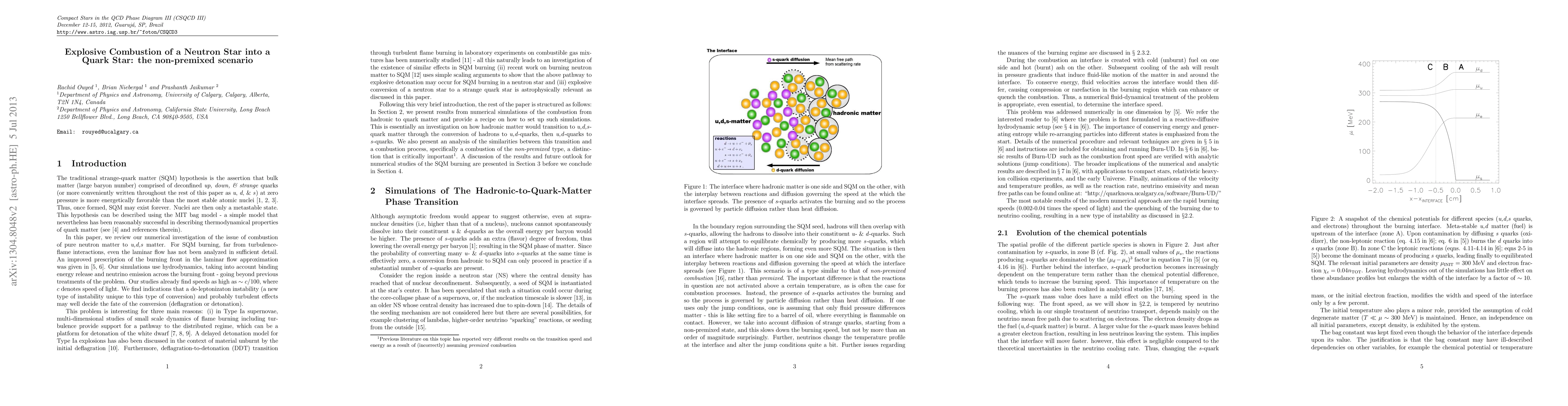 We review aspects of the hydrodynamical combustion of nuclear matter to strange quark matter in a neutron star. Numerical studies on non-premixed combustion that consistently include hydrodynamical flows in a reactive-diffusive setup show that in 1D, the conversion (burning) front moves at sub-sonic speeds. Although the front eventually comes to a halt (in the star's reference frame), it still has ud matter falling onto it, and so is capable of converting the rest of the star. However, in the process, we also find that neutrino cooling of the interface causes it to wrinkle, laying a platform for a deflagrative-to-detonative transition (DDT). We outline progress on improvements in the burning code (Burn-UD: http://quarknova.ucalgary.ca/software/Burn-UD/) that will ultimately reveal the mechanism that can explode the outermost layers of even a dense compact object like a neutron star.