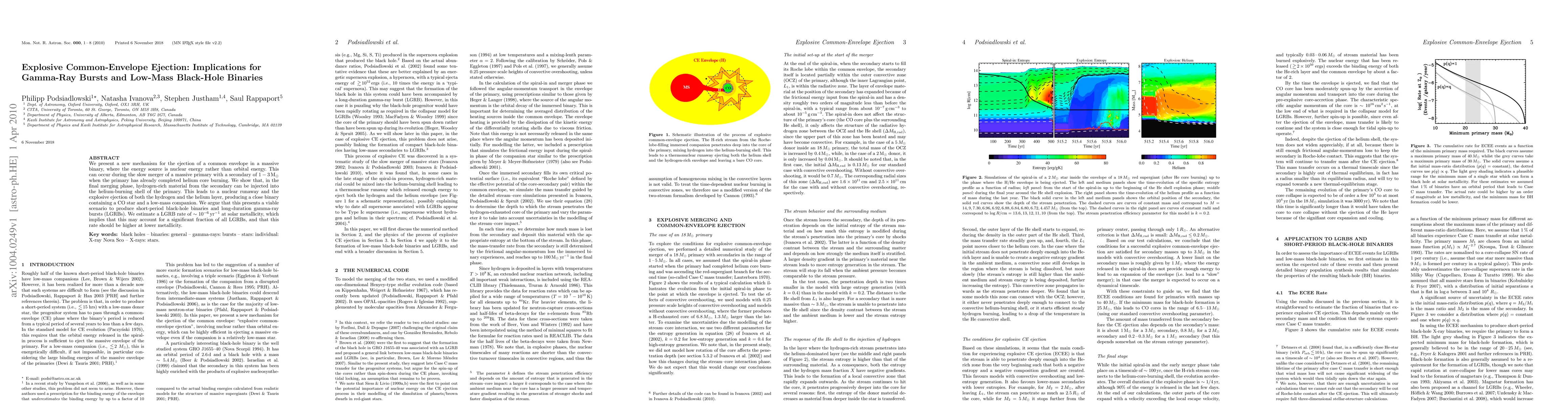 We present a new mechanism for the ejection of a common envelope in a massive binary, where the energy source is nuclear energy rather than orbital energy. This can occur during the slow merger of a massive primary with a secondary of 1-3 Msun when the primary has already completed helium core burning. We show that, in the final merging phase, hydrogen-rich material from the secondary can be injected into the helium-burning shell of the primary. This leads to a nuclear runaway and the explosive ejection of both the hydrogen and the helium layer, producing a close binary containing a CO star and a low-mass companion. We argue that this presents a viable scenario to produce short-period black-hole binaries and long-duration gamma-ray bursts (LGRBs). We estimate a LGRB rate of about 1.e-6 per year at solar metallicity, which implies that this may account for a significant fraction of all LGRBs, and that this rate should be higher at lower metallicity.