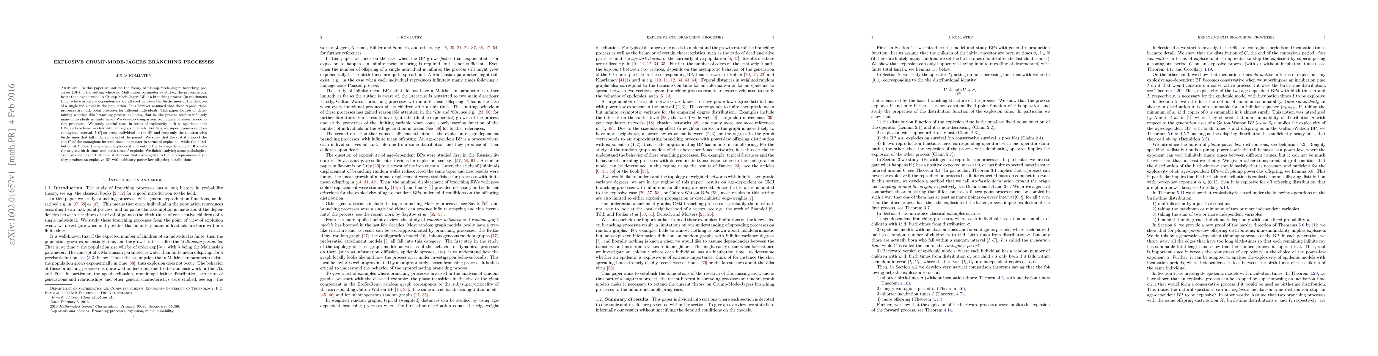 This paper initiates the theory of Crump-Mode-Jagers branching processes without a Malthusian parameter, focusing on whether the process can explode, i.e., reach infinitely many individuals in finite time. It develops comparison techniques and examines special cases like age-dependent BPs and epidemic models, showing that the distribution of contagious intervals influences explosivity.