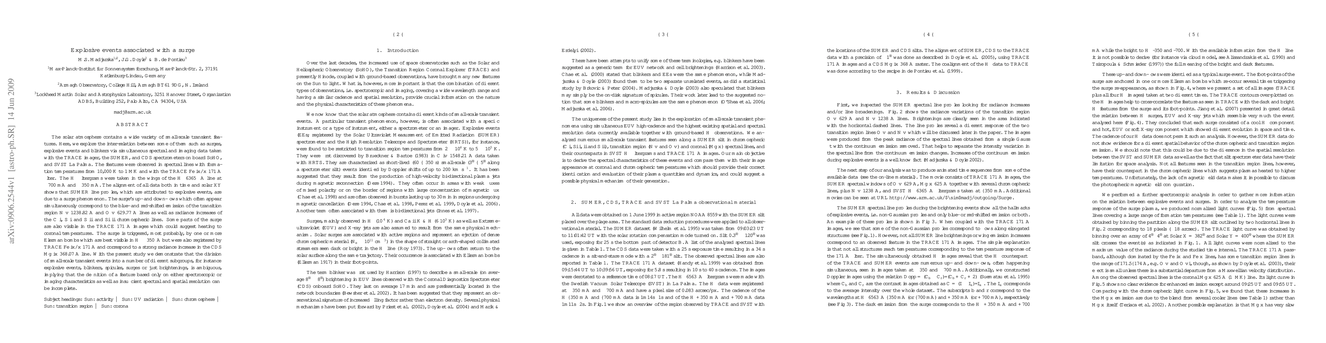 The solar atmosphere contains a wide variety of small-scale transient features. Here, we explore the inter-relation between some of them such as surges, explosive events and blinkers via simultaneous spectral and imaging data taken with the TRACE imager, the SUMER, and CDS spectrometers on board SoHO, and SVST La Palma. The alignment of all data both in time and solar XY shows that SUMER line profiles, which are attributed to explosive events, are due to a surge phenomenon. The surge is triggered, most probably, by one or more Elerman bombs which are best visible in Halpha +-350 A but were also registered by TRACE Fe IX/X 171 A and correspond to a strong radiance increase in the CDS Mg IX 368.07 A line. With the present study we demonstrate that the division of small-scale transient events into a number of different subgroups, for instance explosive events, blinkers, spicules, surges or just brightenings, is ambiguous, implying that the definition of a feature based only on either spectroscopic or imaging characteristics as well as insufficient spectral and spatial resolution can be incomplete.