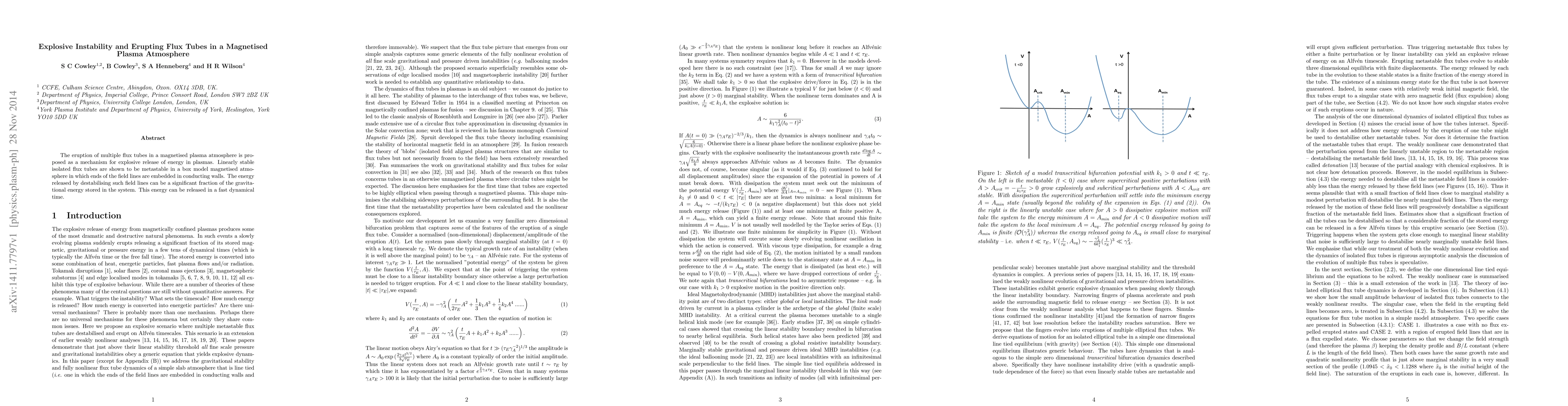 The eruption of multiple flux tubes in a magnetised plasma atmosphere is proposed as a mechanism for explosive release of energy in plasmas. Linearly stable isolated flux tubes are shown to be metastable in a box model magnetised atmosphere in which ends of the field lines are embedded in conducting walls. The energy released by destabilising such field lines can be a significant fraction of the gravitational energy stored in the system. This energy can be released in a fast dynamical time.