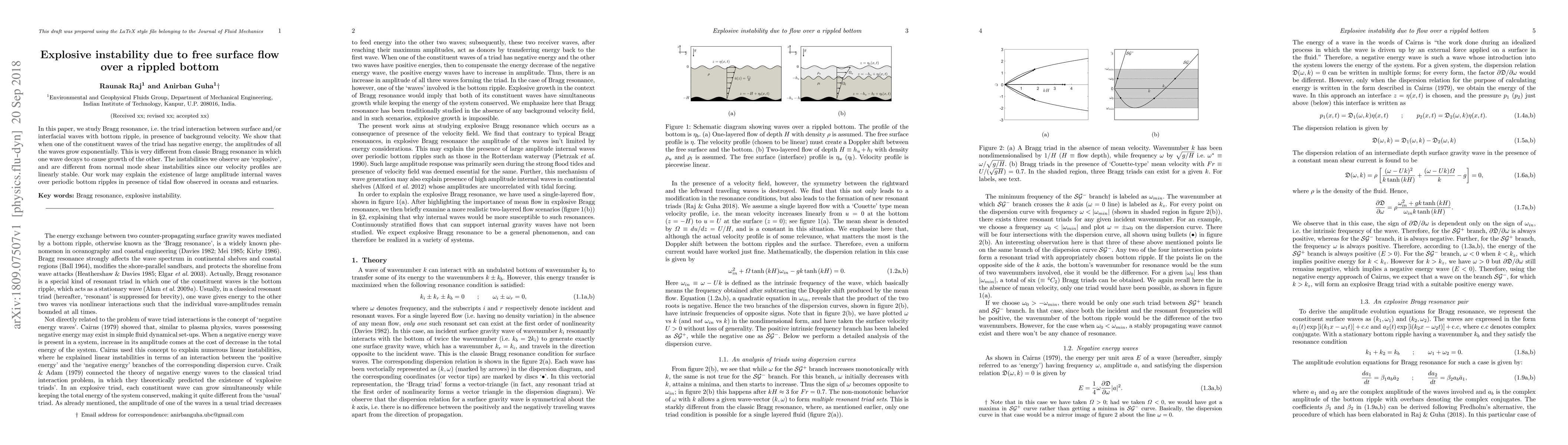 This study investigates Bragg resonance interactions involving surface or interfacial waves, bottom ripples, and background flow, demonstrating explosive instability where negative energy waves lead to exponential growth in wave amplitudes, contrasting classic Bragg resonance behavior. The findings may elucidate the occurrence of large amplitude internal waves over periodic bottom ripples in tidally influenced ocean and estuarine environments.
