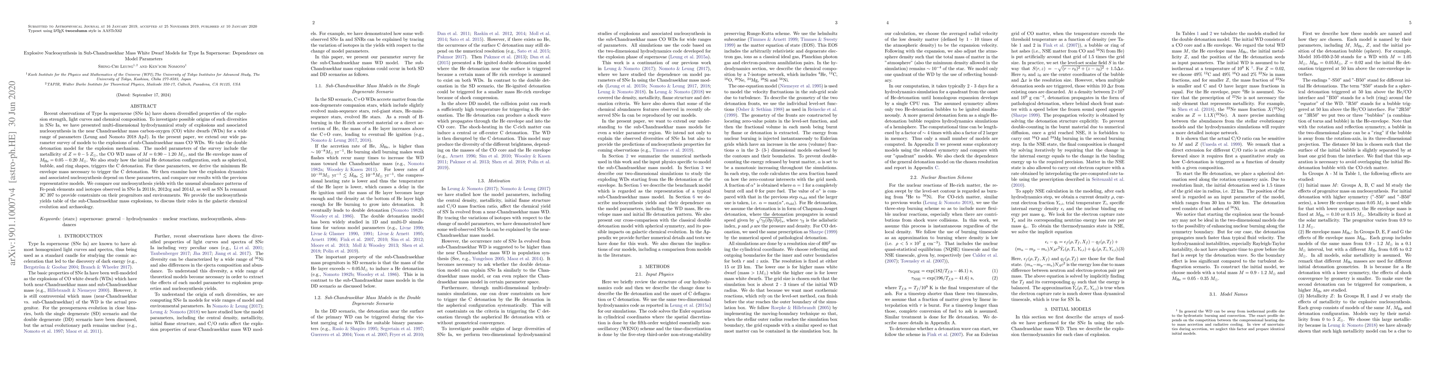 This study investigates how different parameters in sub-Chandrasekhar mass white dwarf models affect Type Ia supernova explosions and their nucleosynthesis, aiming to explain observed diversities in SNe Ia properties.