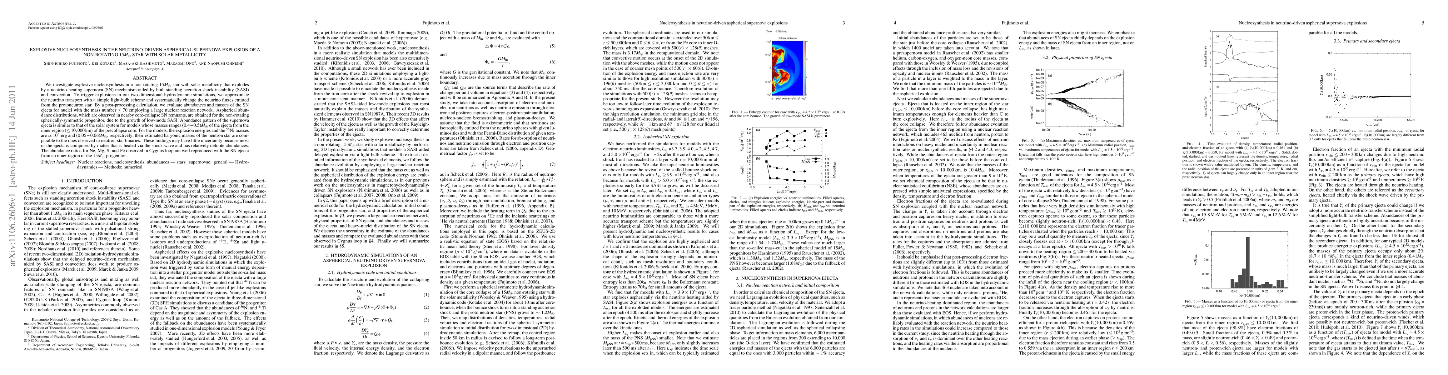 We investigate explosive nucleosynthesis in a non-rotating 15$M_\odot$ star with solar metallicity that explodes by a neutrino-heating supernova (SN) mechanism aided by both standing accretion shock instability (SASI) and convection. To trigger explosions in our two-dimensional hydrodynamic simulations, we approximate the neutrino transport with a simple light-bulb scheme and systematically change the neutrino fluxes emitted from the protoneutron star. By a post-processing calculation, we evaluate abundances and masses of the SN ejecta for nuclei with the mass number $\le 70$ employing a large nuclear reaction network. Aspherical abundance distributions, which are observed in nearby core-collapse SN remnants, are obtained for the non-rotating spherically-symmetric progenitor, due to the growth of low-mode SASI. Abundance pattern of the supernova ejecta is similar to that of the solar system for models whose masses ranges $(0.4-0.5) \Ms$ of the ejecta from the inner region ($\le 10,000\km$) of the precollapse core. For the models, the explosion energies and the \nuc{Ni}{56} masses are $ \simeq 10^{51} \rm erg$ and $(0.05-0.06) \Ms$, respectively; their estimated baryonic masses of the neutron star are comparable to the ones observed in neutron-star binaries. These findings may have little uncertainty because most of the ejecta is composed by matter that is heated via the shock wave and has relatively definite abundances. The abundance ratios for Ne, Mg, Si and Fe observed in Cygnus loop are well reproduced with the SN ejecta from an inner region of the $15\Ms$ progenitor.