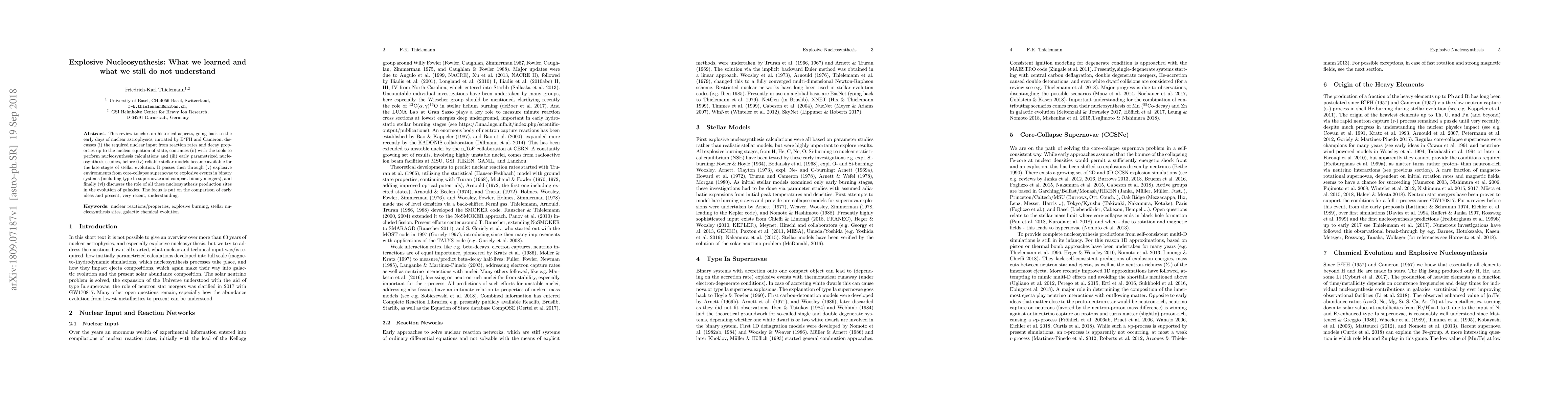 This review traces the evolution of explosive nucleosynthesis from its early days in nuclear astrophysics to contemporary understanding, highlighting the progress made and persistent gaps in knowledge, particularly in the context of supernovae and binary systems. It emphasizes the comparison between historical and modern insights into nucleosynthesis in various stellar environments and their impact on galactic evolution.