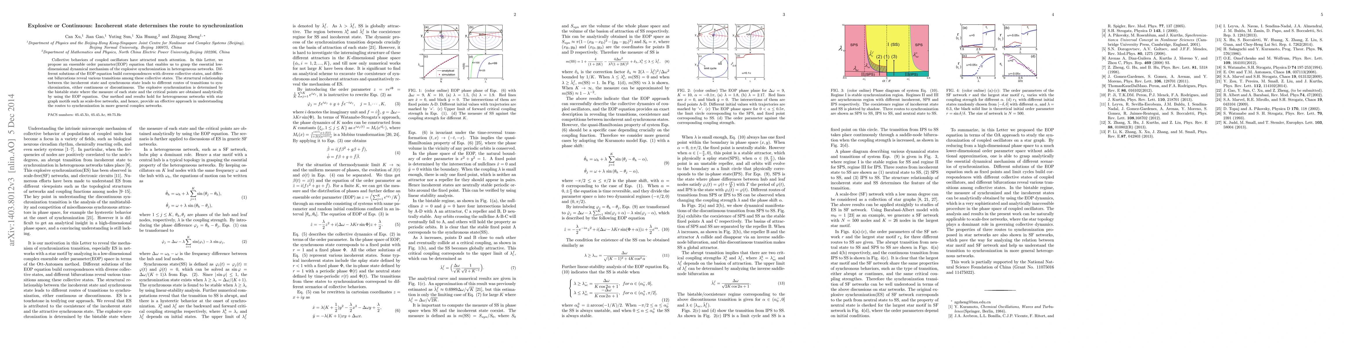 This paper proposes an ensemble order parameter (EOP) equation to analyze the synchronization dynamics in heterogeneous networks, revealing that the incoherent state determines the route to synchronization, which can be either continuous or discontinuous. The study analytically determines the critical points and bistable states leading to explosive synchronization in networks like scale-free graphs.