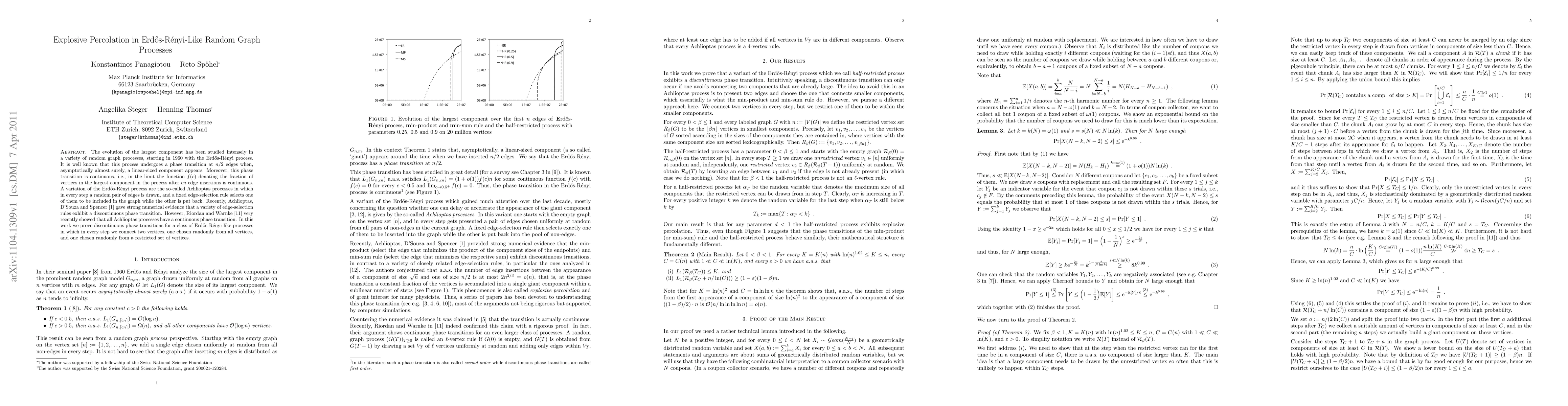 The evolution of the largest component has been studied intensely in a variety of random graph processes, starting in 1960 with the Erd\"os-R\'enyi process. It is well known that this process undergoes a phase transition at n/2 edges when, asymptotically almost surely, a linear-sized component appears. Moreover, this phase transition is continuous, i.e., in the limit the function f(c) denoting the fraction of vertices in the largest component in the process after cn edge insertions is continuous. A variation of the Erd\"os-R\'enyi process are the so-called Achlioptas processes in which in every step a random pair of edges is drawn, and a fixed edge-selection rule selects one of them to be included in the graph while the other is put back. Recently, Achlioptas, D'Souza and Spencer (2009) gave strong numerical evidence that a variety of edge-selection rules exhibit a discontinuous phase transition. However, Riordan and Warnke (2011) very recently showed that all Achlioptas processes have a continuous phase transition. In this work we prove discontinuous phase transitions for a class of Erd\"os-R\'enyi-like processes in which in every step we connect two vertices, one chosen randomly from all vertices, and one chosen randomly from a restricted set of vertices.