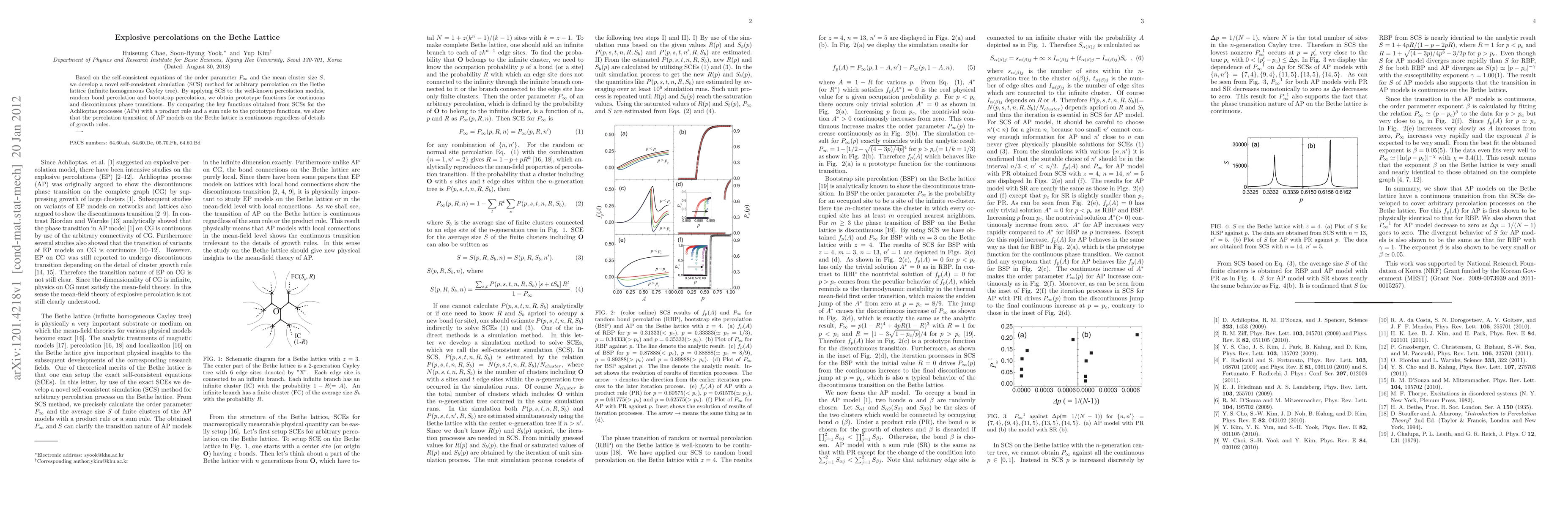 This paper introduces a self-consistent simulation method for percolation on the Bethe lattice, applying it to random bond and bootstrap percolation to identify phase transition types. It concludes that the Achlioptas processes on the Bethe lattice exhibit continuous percolation transitions, irrespective of specific growth rules.
