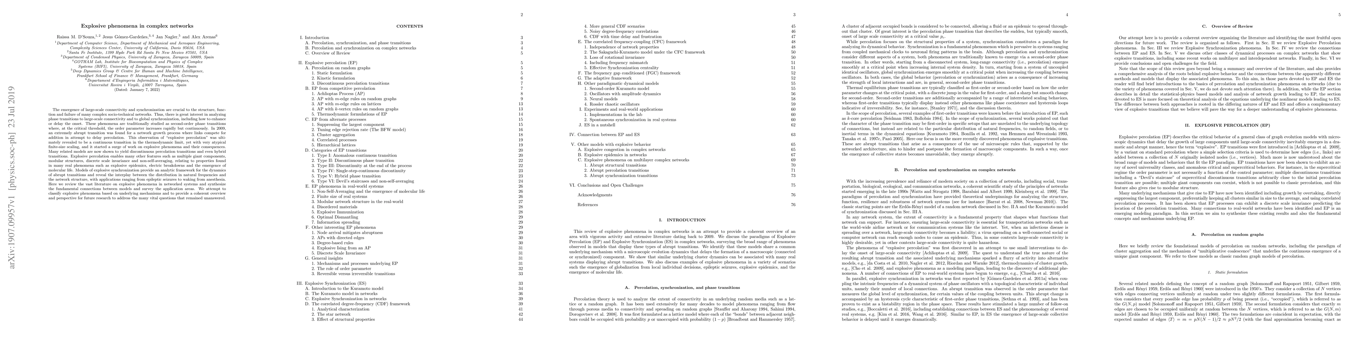 This paper reviews the literature on explosive phenomena in complex networks, focusing on abrupt transitions like explosive percolation and synchronization. It synthesizes models and their applications, classifying mechanisms and highlighting open questions for future research.