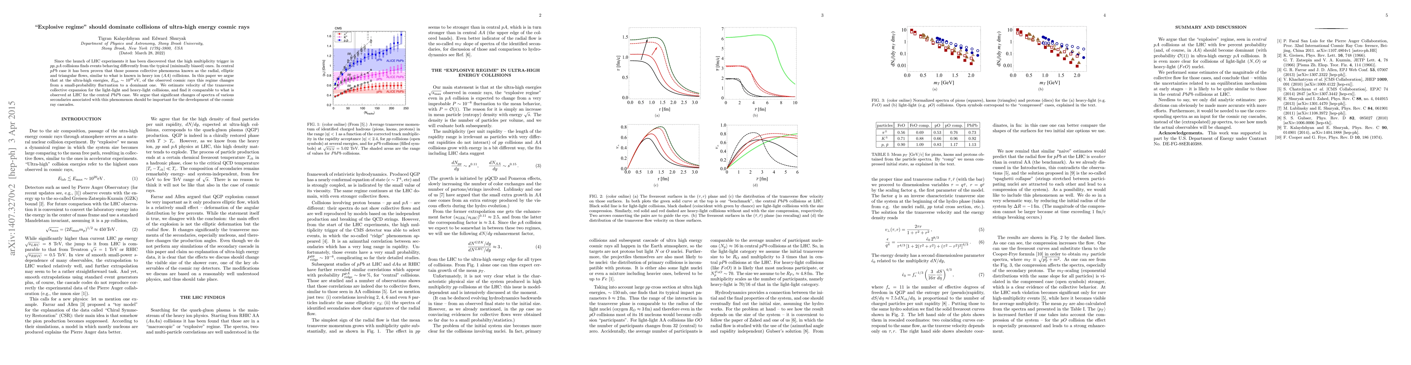 Since the launch of LHC experiments it has been discovered that the high multiplicity trigger in pp, pA collisions finds events behaving differently from the typical (minimally biased) ones. In central pPb case it has been proven that those possess collective phenomena known as the radial, elliptic and triangular flows, similar to what is known in heavy ion (AA) collisions. In this paper we argue that at the ultra-high energies, E_lab ~ 10^{20} eV, of the observed cosmic rays this regime changes from a small-probability fluctuation to a dominant one. We estimate velocity of the transverse collective expansion for the light-light and heavy-light collisions, and find it comparable to what is observed at LHC for the central PbPb case. We argue that significant changes of spectra of various secondaries associated with this phenomenon should be important for the development of the cosmic ray cascades.