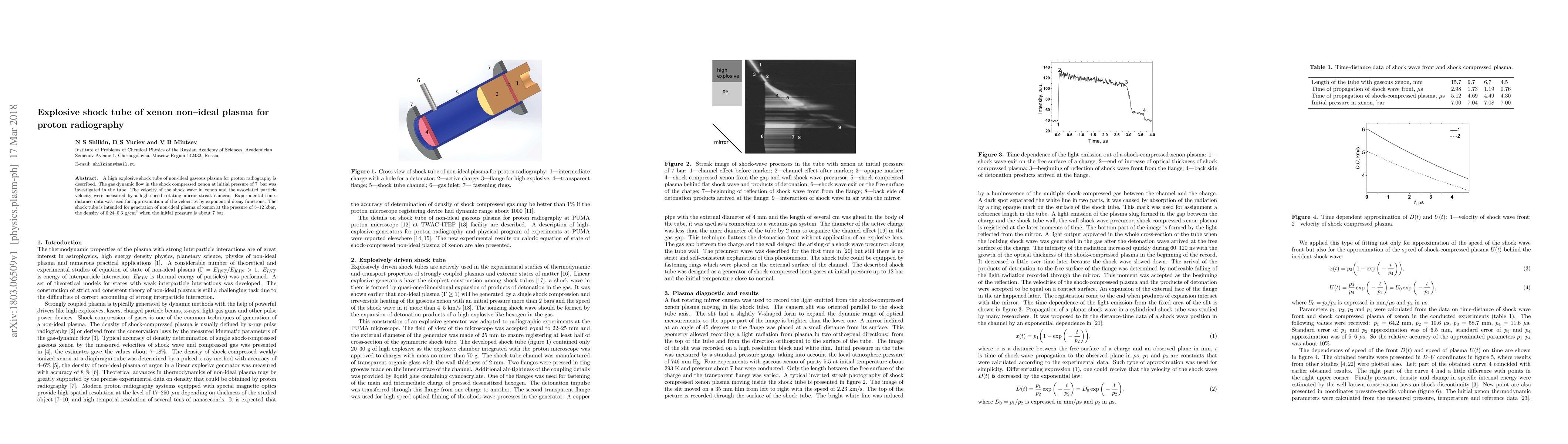 A high-explosives shock tube of non-ideal gasous plasma for proton radiography was developed.