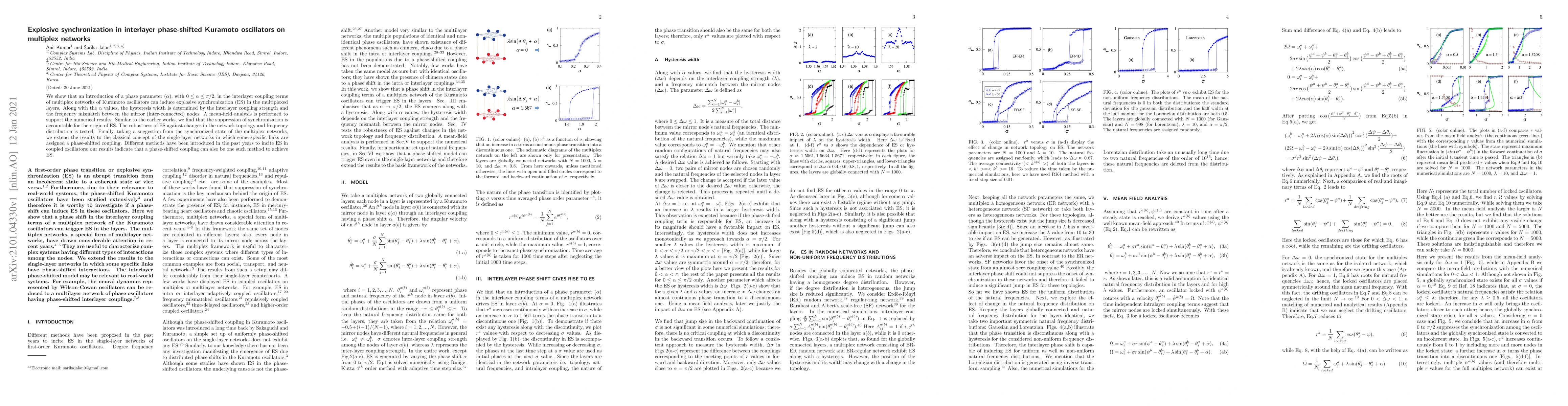 We show that an introduction of a phase parameter ($\alpha$), with $0 \le \alpha \le \pi/2$, in the interlayer coupling terms of multiplex networks of Kuramoto oscillators can induce explosive synchronization (ES) in the multiplexed layers. Along with the {\alpha} values, the hysteresis width is determined by the interlayer coupling strength and the frequency mismatch between the mirror (inter-connected) nodes. A mean-field analysis is performed to support the numerical results. Similar to the earlier works, we find that the suppression of synchronization is accountable for the origin of ES. The robustness of ES against changes in the network topology and frequency distribution is tested. Finally, taking a suggestion from the synchronized state of the multiplex networks, we extend the results to the classical concept of the single-layer networks in which some specific links are assigned a phase-shifted coupling. Different methods have been introduced in the past years to incite ES in coupled oscillators; our results indicate that a phase-shifted coupling can also be one such method to achieve ES.