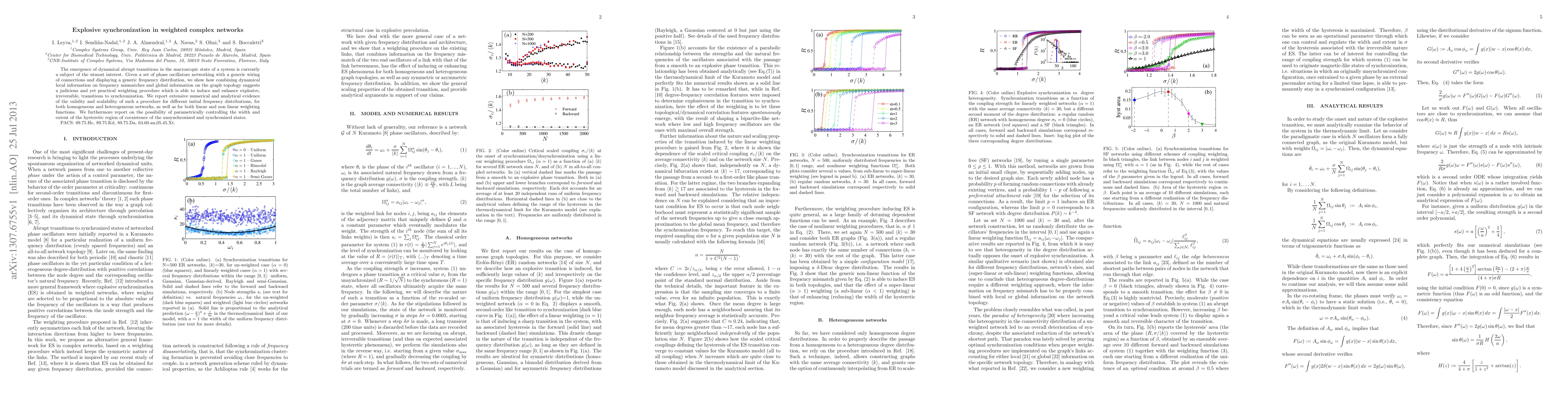 This paper investigates the synchronization dynamics in weighted complex networks, demonstrating a practical weighting procedure that induces explosive transitions to synchronization. The method combines local frequency mismatch information with global network topology, showing scalability and control over the synchronization process across various network types and weighting functions.
