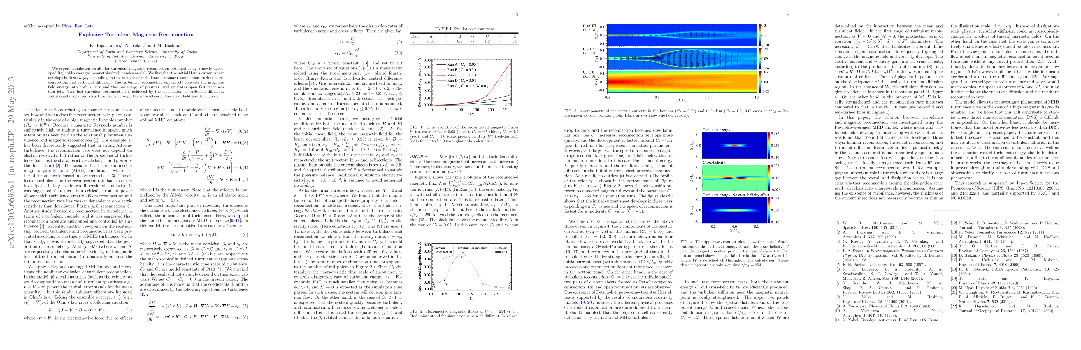 This study uses a new Reynolds-averaged magnetohydrodynamics model to simulate turbulent magnetic reconnection, revealing three development paths: laminar, turbulent, and turbulent diffusion. The explosive turbulent reconnection converts magnetic field energy into kinetic and thermal plasma energy, generating fast reconnection jets.