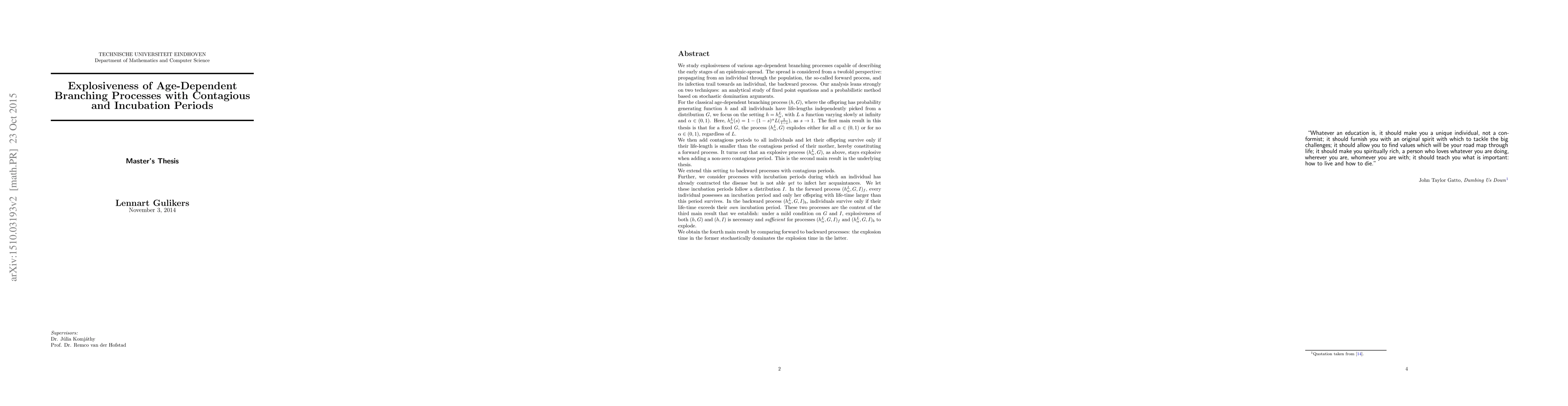 The research employs analysis of age-dependent branching processes with contagious and incubation periods, examining explosiveness through forward and backward processes, and considering the impact of varying distributions for offspring generation, life-lengths, contagious periods, and incubation periods.