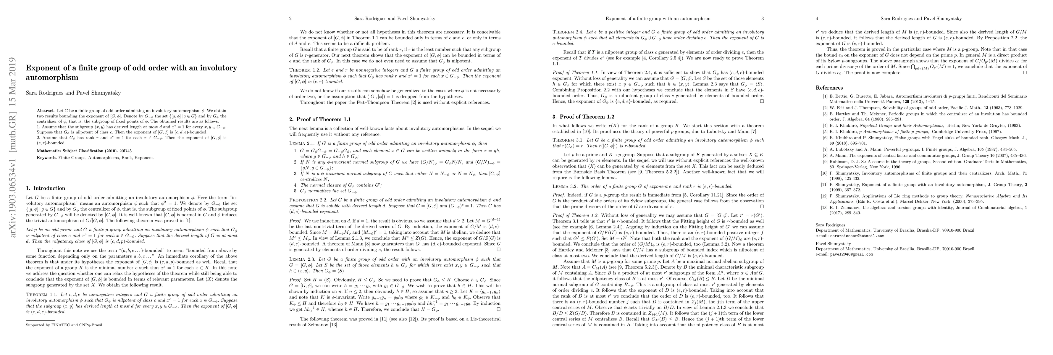 This paper investigates the exponent of the commutator subgroup $[G,\phi]$ in a finite group $G$ of odd order with an involutory automorphism $\phi$. It establishes bounds on the exponent based on the derived length of certain subgroups and the nilpotency class of the centralizer of $\phi$.