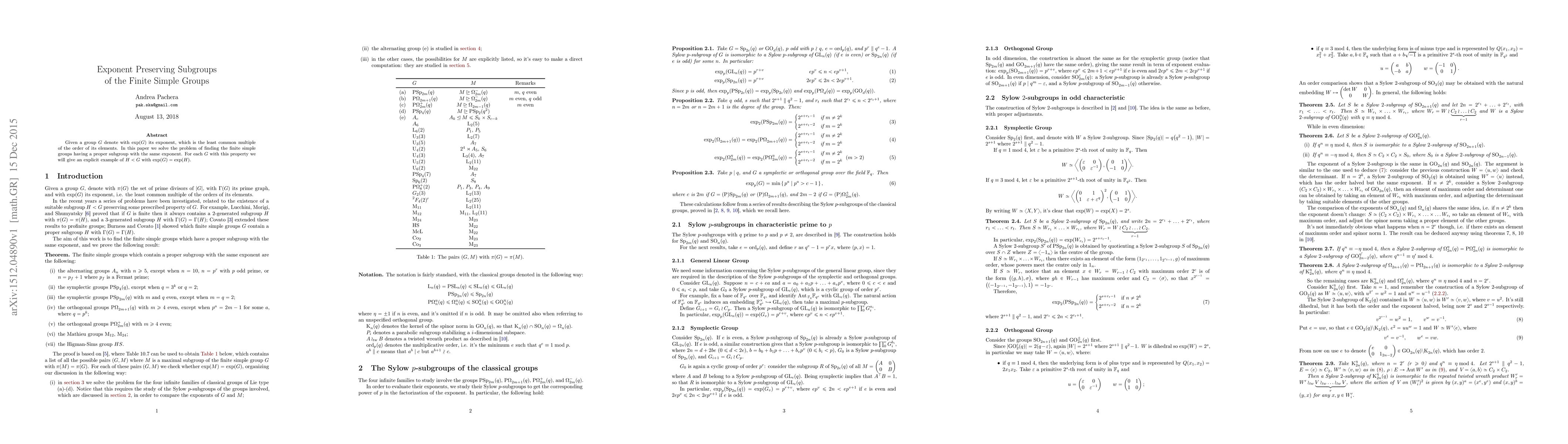 Given a group G denote with exp(G) its exponent, which is the least common