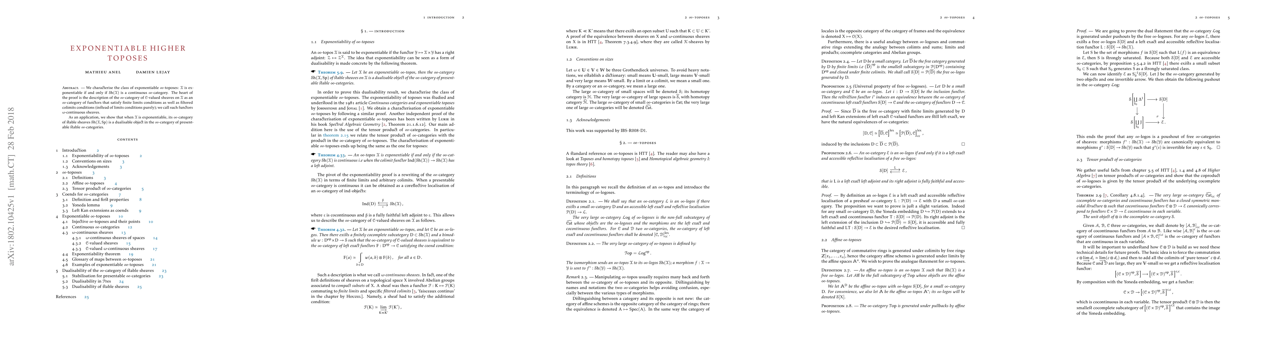 We characterise the class of exponentiable $\infty$-toposes: $\mathcal X$ is exponentiable if and only if $\mathcal S\mathrm{h}(\mathcal X)$ is a continuous $\infty$-category. The heart of the proof is the description of the $\infty$-category of $\mathcal C$-valued sheaves on $\mathcal X$ as an $\infty$-category of functors that satisfy finite limits conditions as well as filtered colimits conditions (instead of limits conditions purely); we call such functors $\omega$-continuous sheaves. As an application, we show that when $\mathcal X$ is exponentiable, its $\infty$-category of stable sheaves $\mathcal S\mathrm{h}(\mathcal X, \mathrm{Sp})$ is a dualisable object in the $\infty$-category of presentable stable $\infty$-categories.
