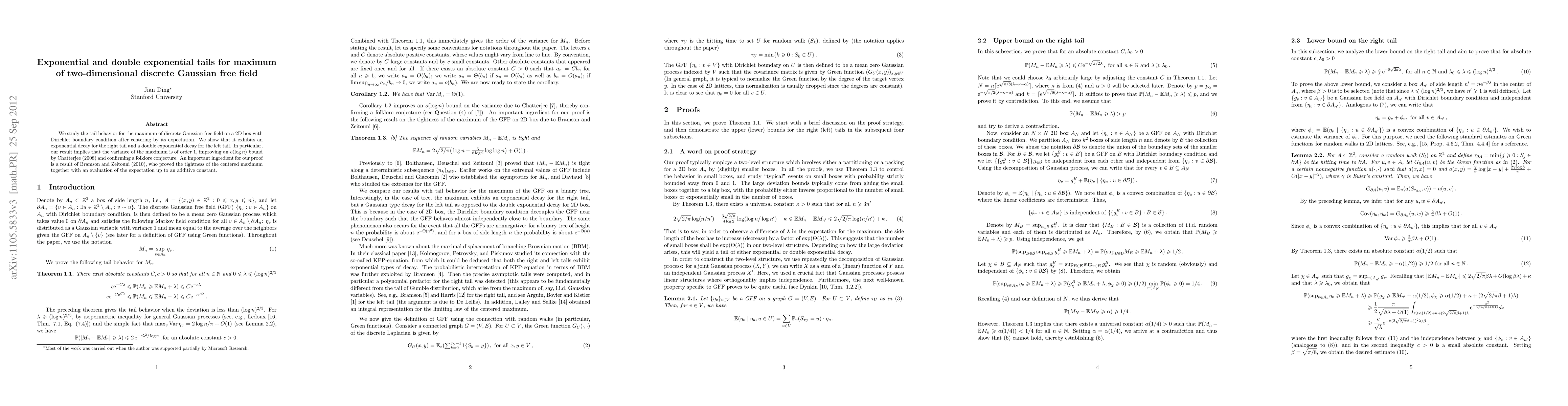 This paper investigates the tail behavior of the maximum of a centered two-dimensional discrete Gaussian free field, showing exponential decay for the right tail and double exponential decay for the left tail. It improves previous variance bounds and confirms a long-standing conjecture.