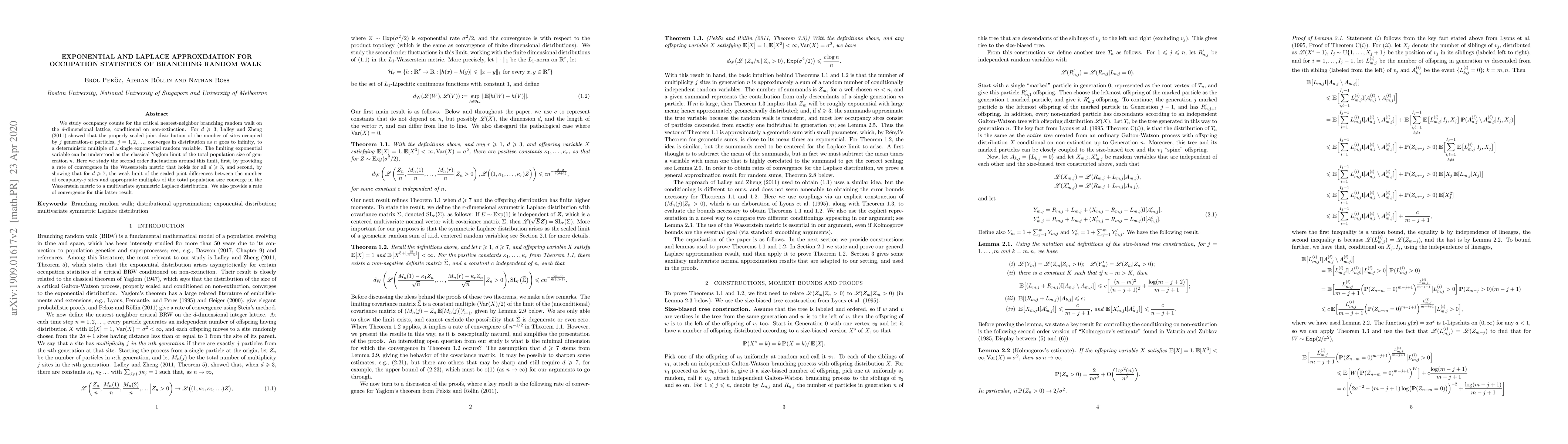 We study occupancy counts for the critical nearest-neighbor branching random walk on the $d$-dimensional lattice, conditioned on non-extinction. For $d\geq 3$, Lalley and Zheng (2011) showed that the properly scaled joint distribution of the number of sites occupied by $j$ generation-$n$ particles, $j=1,2,\ldots$, converges in distribution as $n$ goes to infinity, to a deterministic multiple of a single exponential random variable. The limiting exponential variable can be understood as the classical Yaglom limit of the total population size of generation $n$. Here we study the second order fluctuations around this limit, first, by providing a rate of convergence in the Wasserstein metric that holds for all $d\geq3$, and second, by showing that for $d\geq 7$, the weak limit of the scaled joint differences between the number of occupancy-$j$ sites and appropriate multiples of the total population size converge in the Wasserstein metric to a multivariate symmetric Laplace distribution. We also provide a rate of convergence for this latter result.