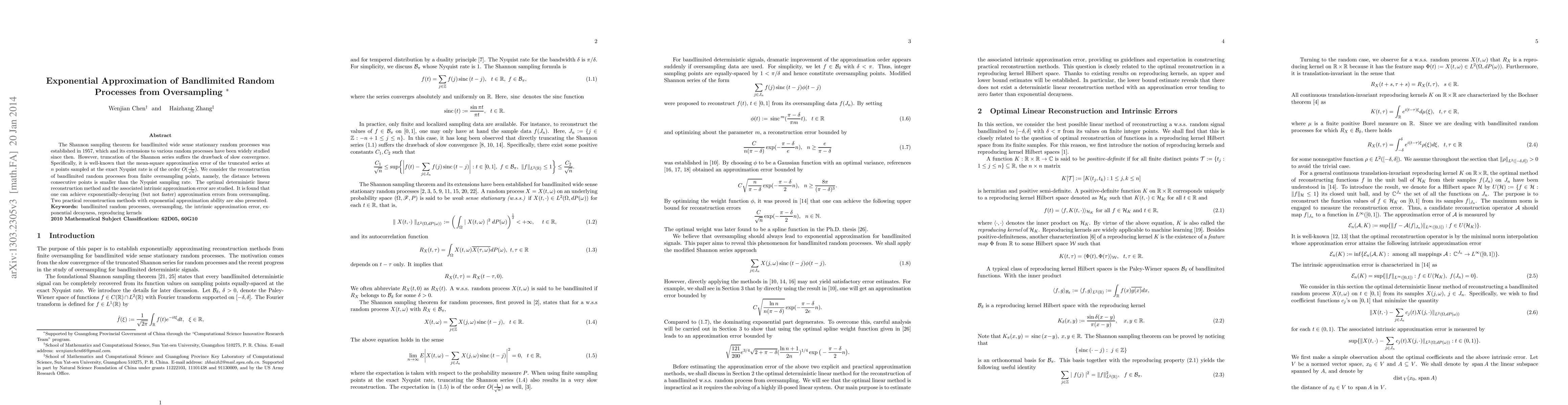 This paper explores the reconstruction of bandlimited random processes using oversampling techniques, demonstrating that oversampling can achieve exponentially-decaying approximation errors, significantly improving upon the slow convergence of the Shannon series. Practical reconstruction methods with exponential approximation capabilities are also introduced.