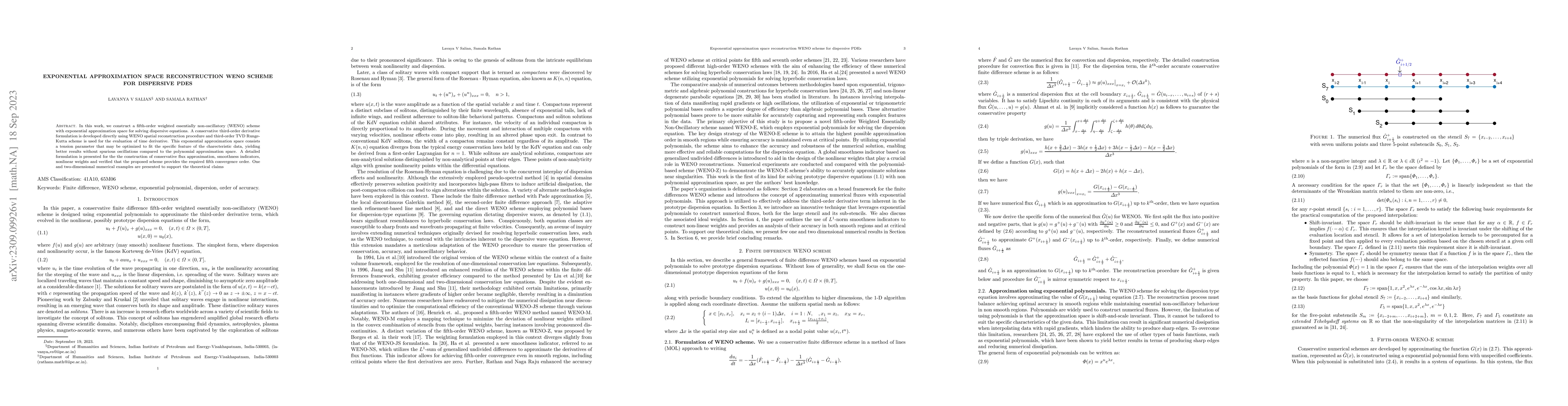 This paper develops a fifth-order WENO scheme with an exponential approximation space for solving dispersive partial differential equations, achieving better results without spurious oscillations compared to polynomial spaces. The scheme includes a conservative third-order derivative formulation and third-order TVD Runge-Kutta for time derivatives, validated through numerical examples.
