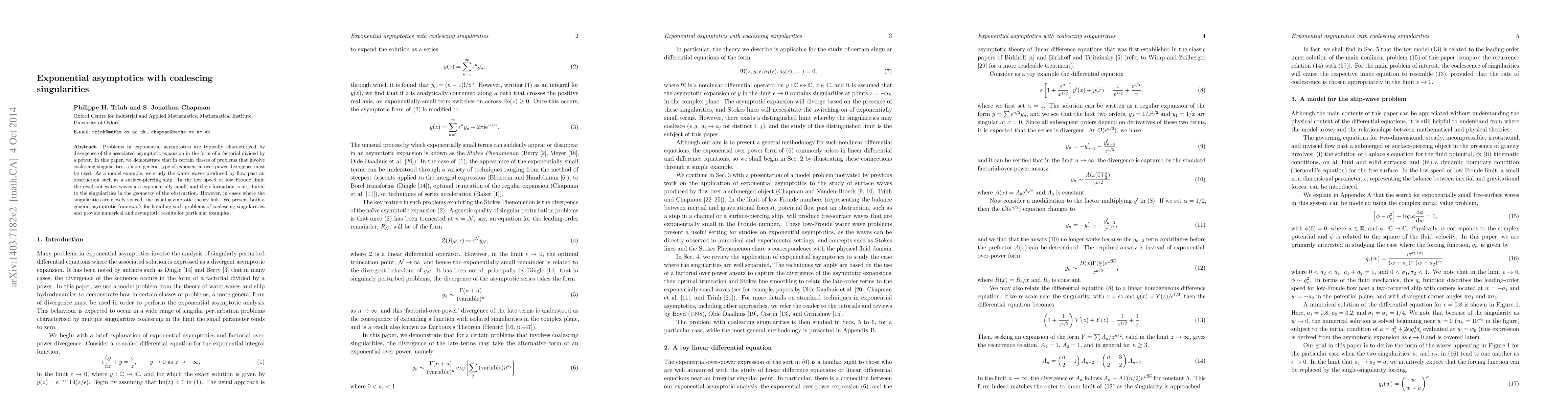 This paper addresses the challenges in exponential asymptotics when singularities coalesce, proposing a new framework to handle such divergences. It applies this framework to the study of water wave formation past an obstruction, demonstrating its effectiveness in scenarios where traditional asymptotic methods fail.