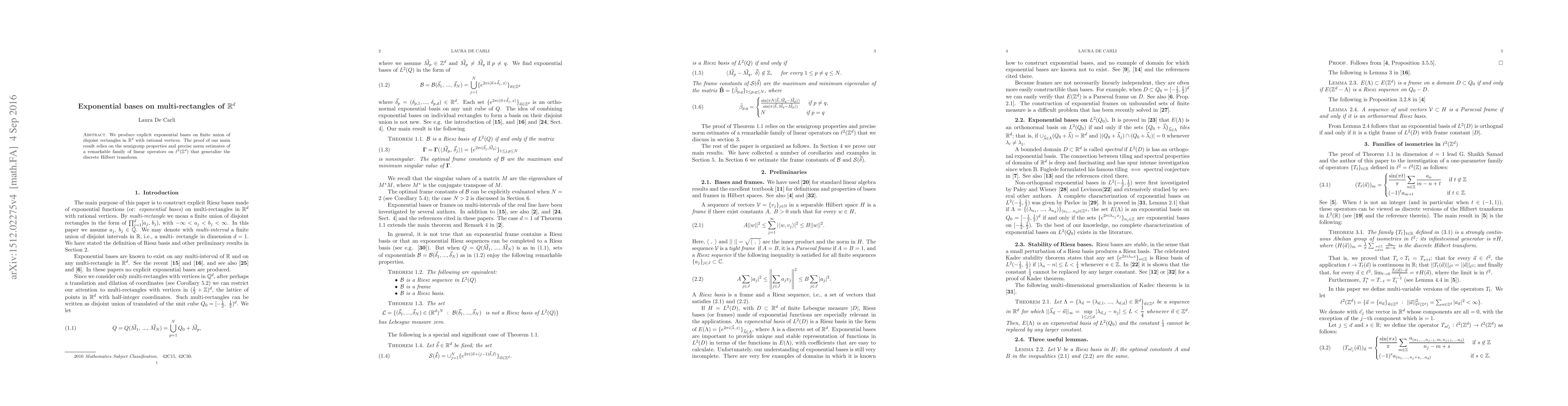 Summary: This paper constructs explicit exponential bases for finite unions of disjoint rectangles in $\mathbb{R}^d$ with rational vertices, providing a novel framework for analyzing multi-dimensional data on these geometric structures.
