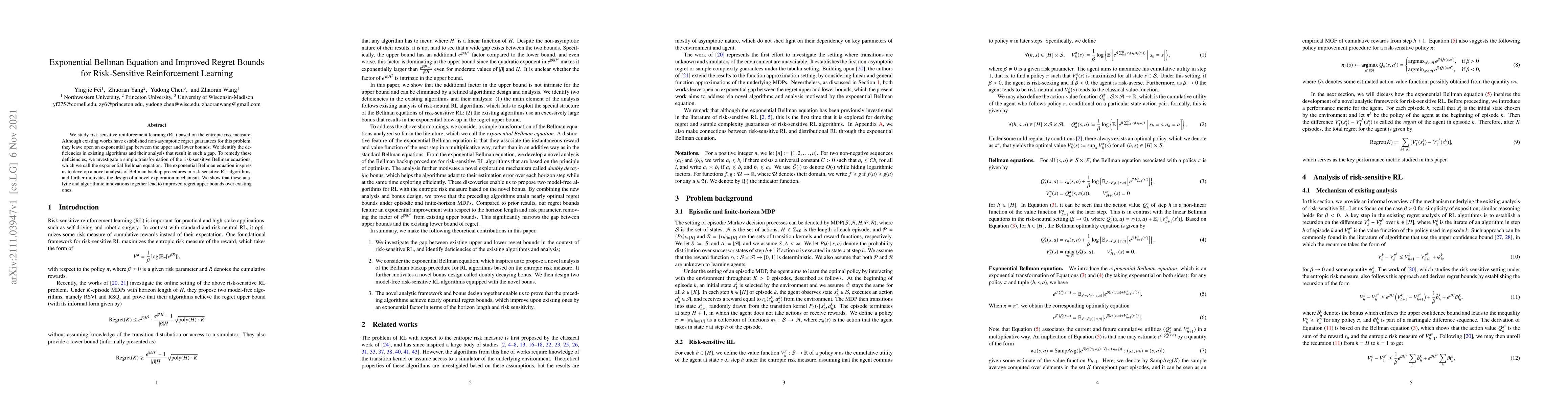 This paper addresses risk-sensitive reinforcement learning using the entropic risk measure, identifying gaps in existing regret bounds. It introduces the exponential Bellman equation to improve analysis and design a new exploration mechanism, resulting in better regret upper bounds.