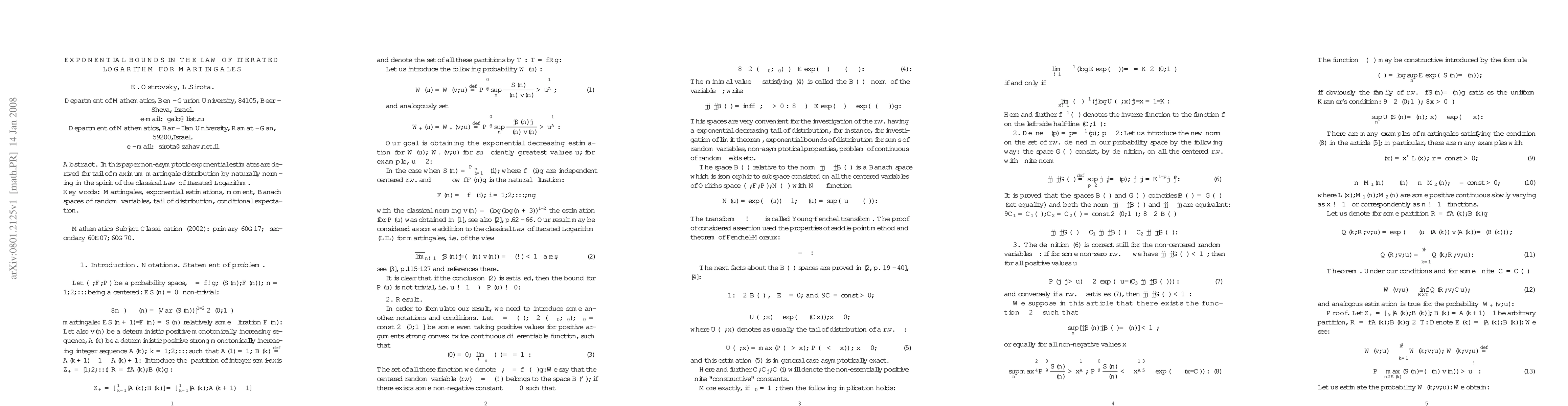 In this paper non-asymptotic exponential estimates are derived for tail of maximum martingale distribution by naturally norming in the spirit of the classical Law of Iterated Logarithm. Key words: Martingales, exponential estimations, moment, Banach spaces of random variables, tail of distribution, conditional expectation.
