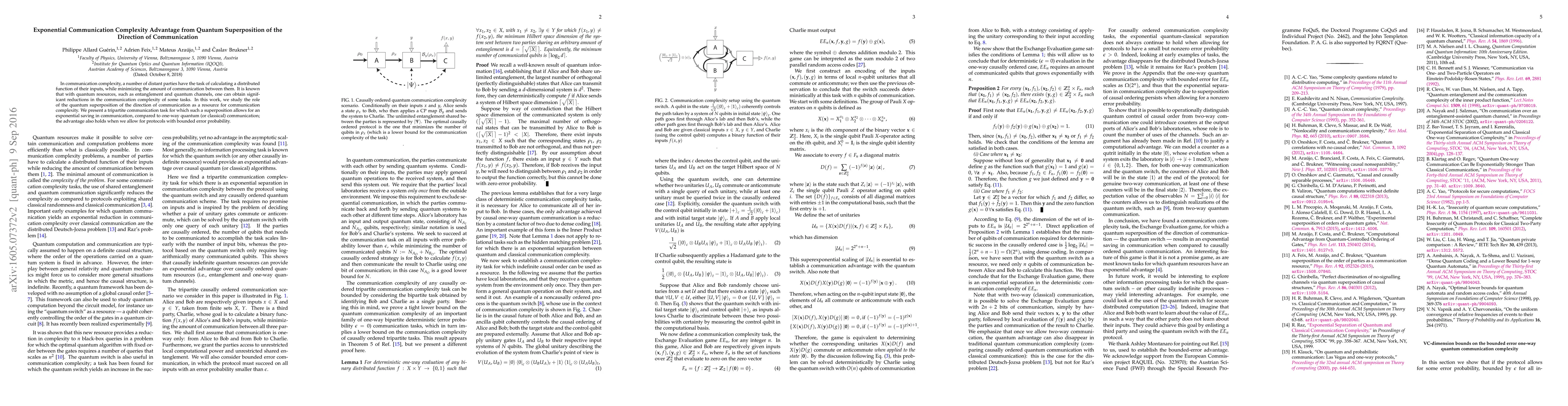 This paper investigates how quantum superposition of the communication direction can drastically reduce communication complexity in a tripartite task. It demonstrates an exponential improvement over classical or one-way quantum communication, even with protocols allowing bounded error probabilities.