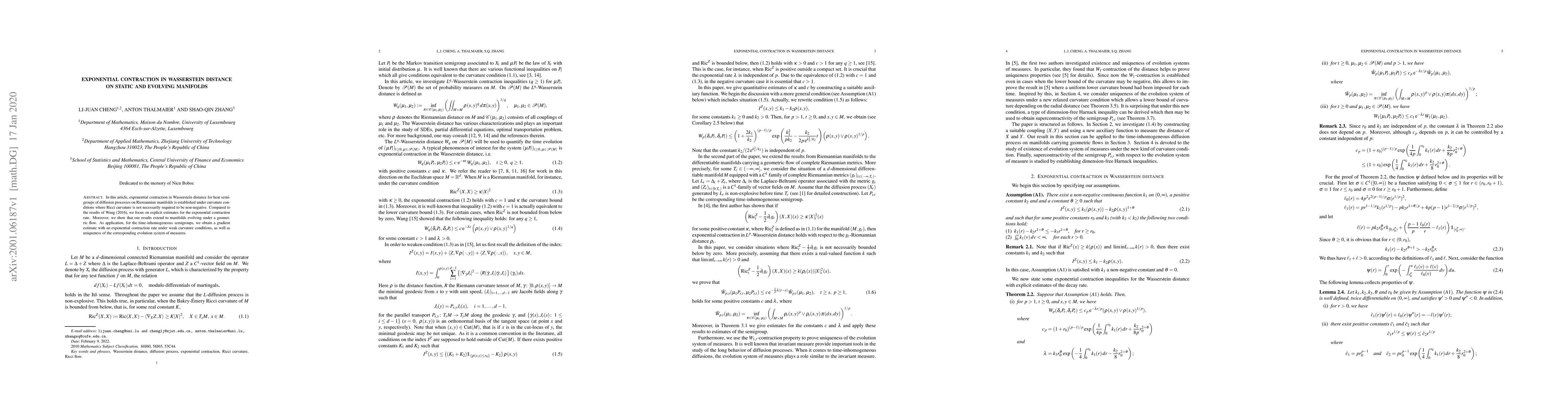 This paper establishes exponential contraction in Wasserstein distance for heat semigroups on Riemannian manifolds under curvature conditions, providing explicit estimates for the contraction rate. It extends these results to evolving manifolds under geometric flow, and applies them to obtain a gradient estimate and uniqueness of the evolution system of measures.