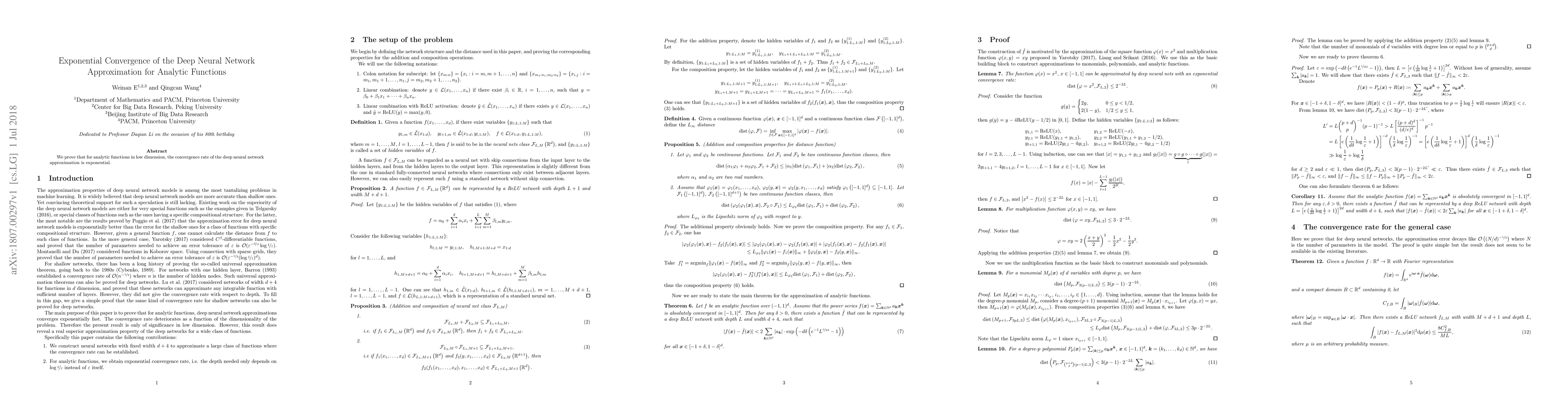 Summary: This paper demonstrates that deep neural networks exhibit exponential convergence when approximating analytic functions in low dimensions. The findings provide a theoretical foundation for the efficiency of deep learning in such contexts.