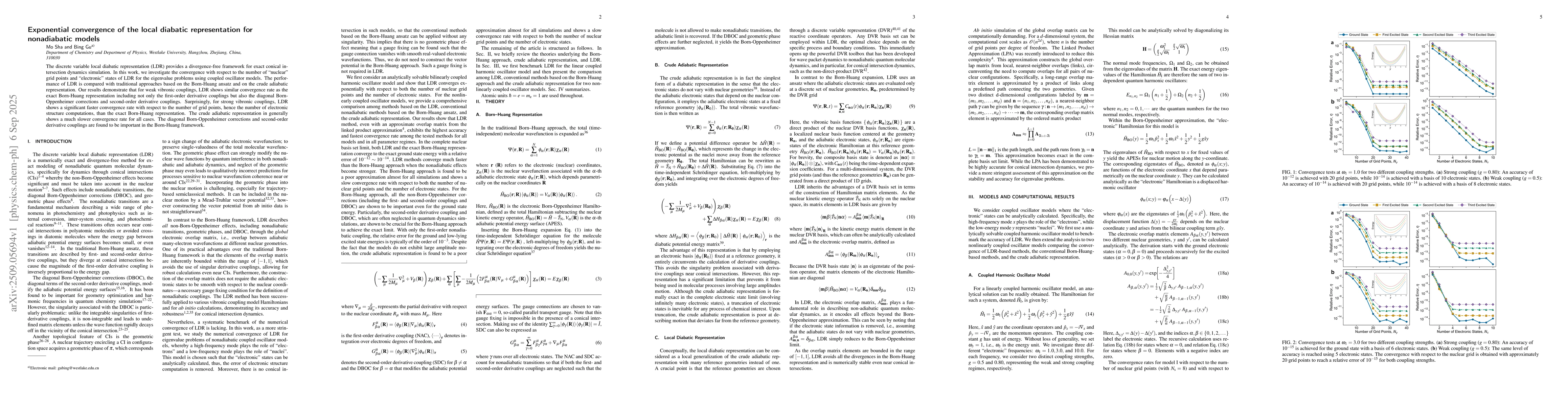 The discrete variable local diabatic representation (LDR) provides a divergence-free framework for exact conical intersection dynamics simulation. In this work, we investigate the convergence with respect to the number of "nuclear" grid points and "electronic" states of LDR for the eigenvalue problems using coupled oscillator models. The performance of LDR is compared with traditional approaches based on the Born-Huang ansatz and on the crude adiabatic representation. Our results demonstrate that for weak vibronic couplings, LDR shows similar convergence rate as the exact Born-Huang representation including not only the first-order derivative couplings but also the diagonal Born-Oppenheimer corrections and second-order derivative couplings. Surprisingly, for strong vibronic couplings, LDR shows a significant faster convergence rate with respect to the number of grid points, hence the number of electronic structure computations, than the exact Born-Huang representation. The crude adiabatic representation in generally shows a much slower convergence rate for all cases. The diagonal Born-Oppenheimer corrections and second-order derivative couplings are found to be important in the Born-Huang framework.