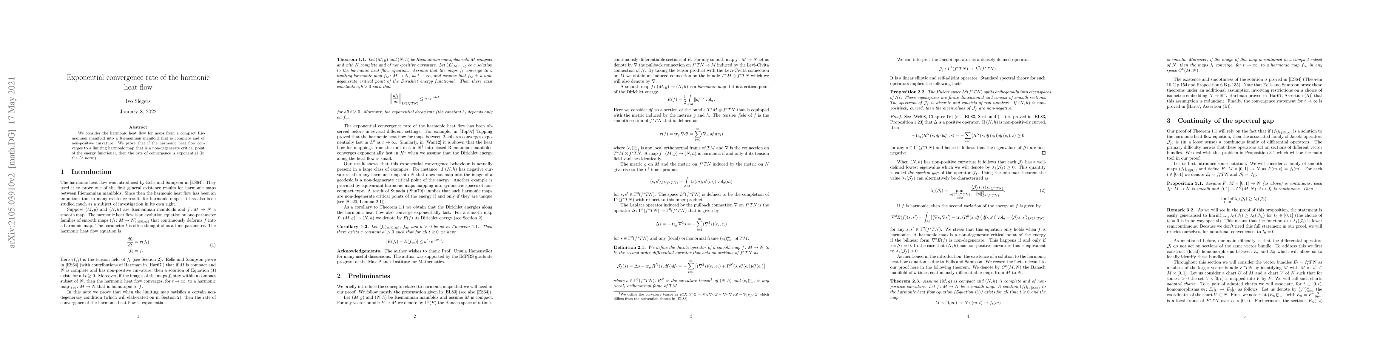 This paper proves that the harmonic heat flow for maps from a compact Riemannian manifold to a complete, non-positively curved manifold converges exponentially to a non-degenerate critical point of the energy functional in the $L^2$ norm. The result establishes an exponential convergence rate for this heat flow.
