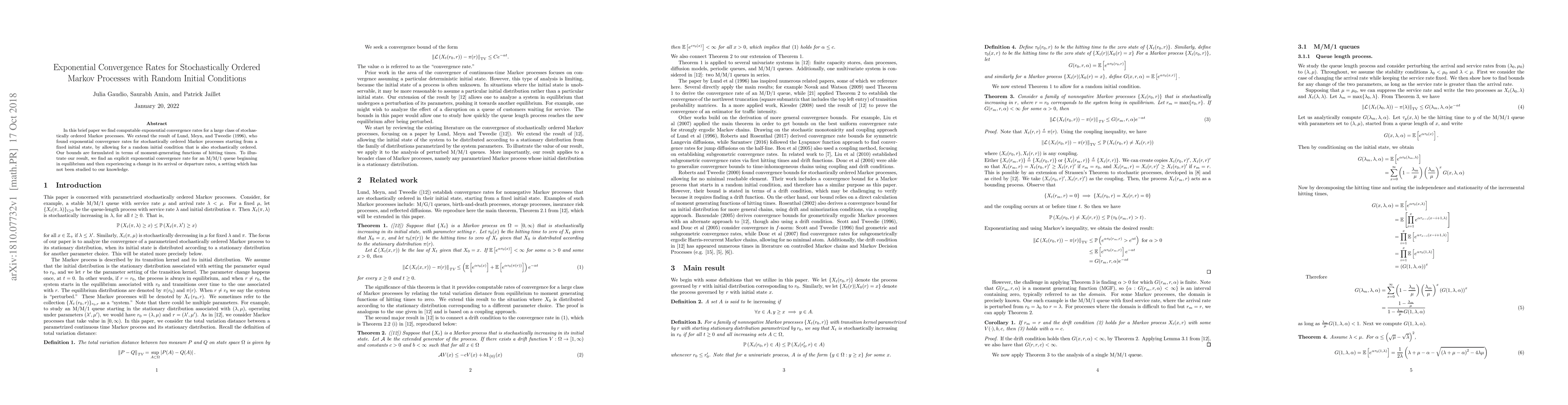 This paper establishes exponential convergence rates for stochastically ordered Markov processes with random initial conditions, extending previous results that only considered fixed initial states. The authors provide bounds expressed in terms of moment-generating functions, and demonstrate their findings with an M/M/1 queue example.