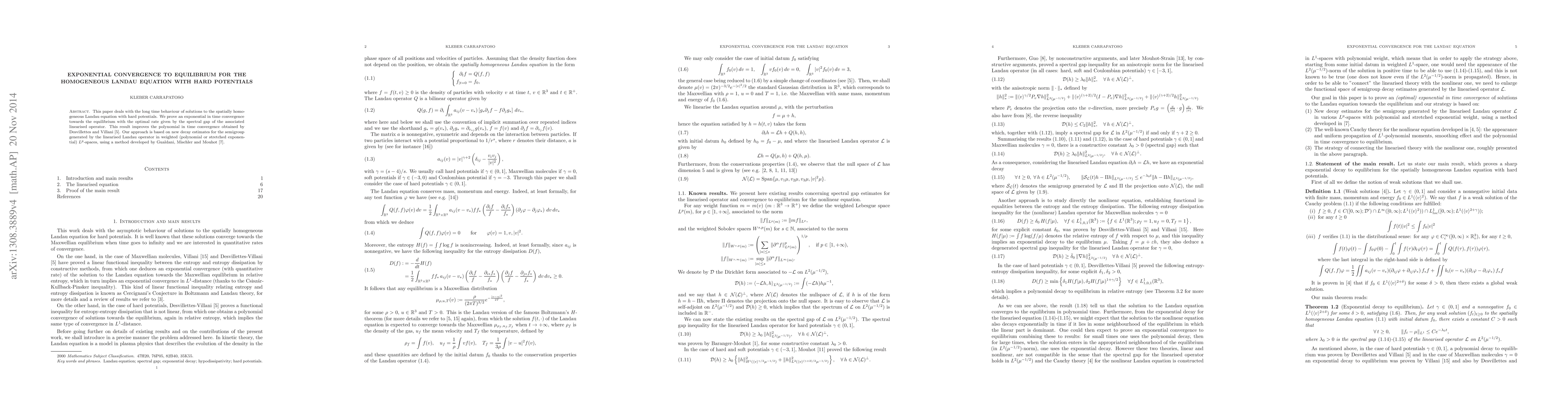 This paper proves exponential convergence to equilibrium for the homogeneous Landau equation with hard potentials, improving upon previous polynomial convergence results. The optimal rate is determined by the spectral gap of the linearized operator, achieved through new decay estimates for the semigroup in weighted $L^p$-spaces.
