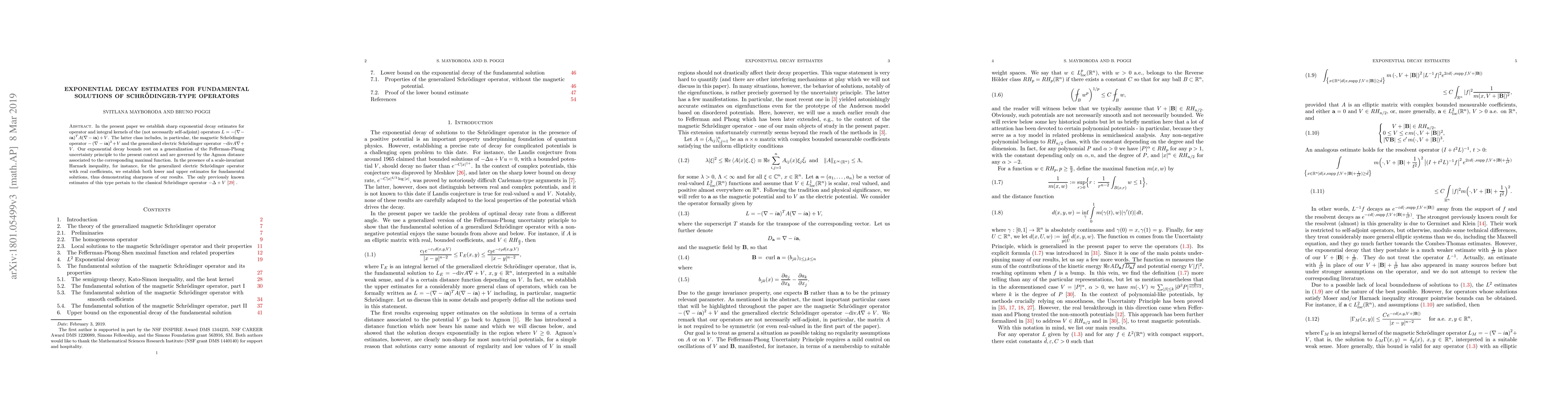 In the present paper we establish sharp exponential decay estimates for operator and integral kernels of the (not necessarily self-adjoint) operators $L=-(\nabla-i\mathbf{a})^TA(\nabla-i\mathbf{a})+V$. The latter class includes, in particular, the magnetic Schr\"odinger operator $-\left(\nabla-i\mathbf{a}\right)^2+V$ and the generalized electric Schr\"odinger operator $-{\rm div }A\nabla+V$. Our exponential decay bounds rest on a generalization of the Fefferman-Phong uncertainty principle to the present context and are governed by the Agmon distance associated to the corresponding maximal function. In the presence of a scale-invariant Harnack inequality, for instance, for the generalized electric Schr\"odinger operator with real coefficients, we establish both lower and upper estimates for fundamental solutions, thus demonstrating sharpness of our results. The only previously known estimates of this type pertain to the classical Schr\"odinger operator $-\Delta +V$.