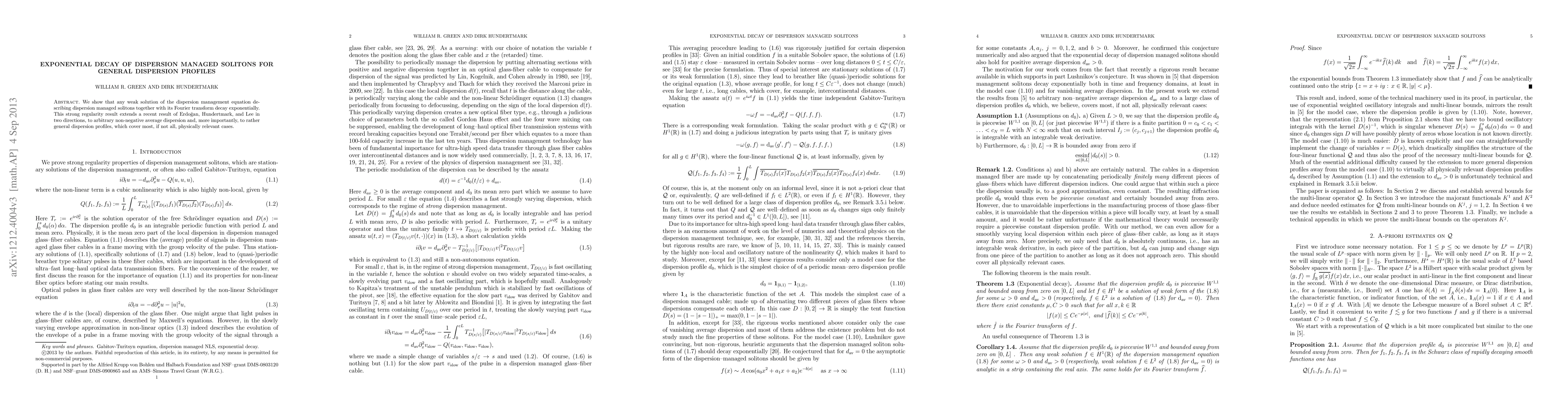 This paper demonstrates exponential decay for weak solutions of the Gabitov-Turitsyn equation, describing dispersion managed solitons, under general non-negative average dispersion and a wide range of dispersion profiles, extending previous results.