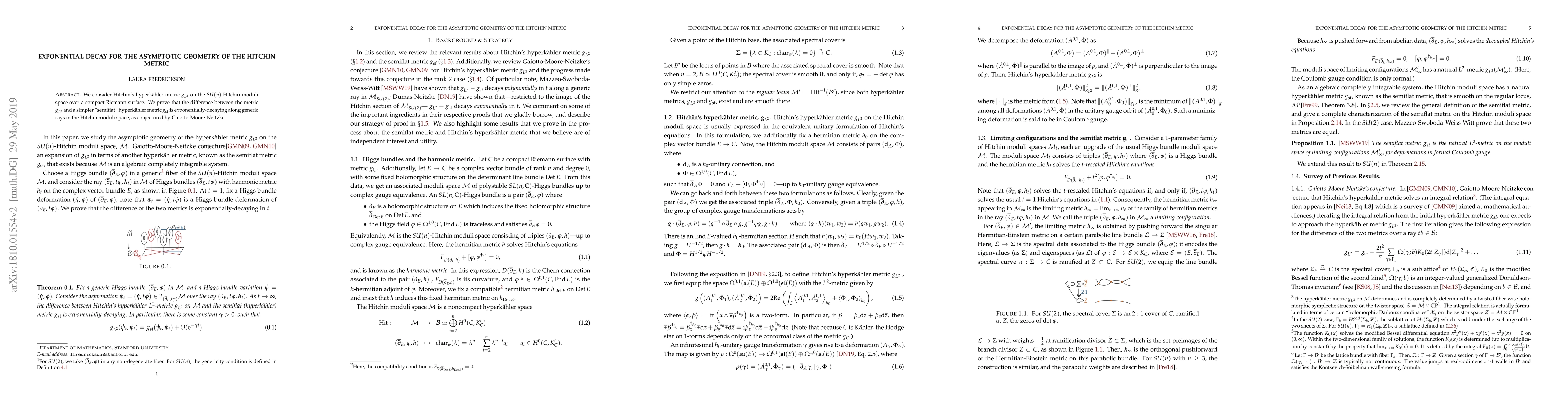 This paper proves that the difference between Hitchin's hyperkähler metric $g_{L^2}$ and a simpler "semiflat" metric $g_{\mathrm{sf}}$ on the $SU(n)$-Hitchin moduli space over a compact Riemann surface decays exponentially along generic rays, confirming a conjecture by Gaiotto-Moore-Neitzke.