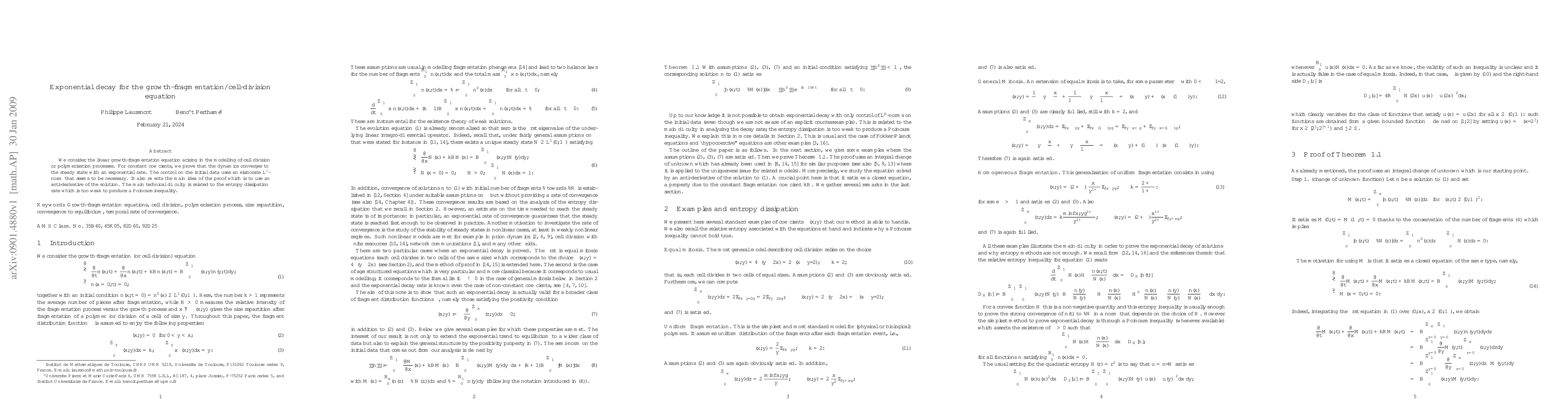 Researchers prove that a specific equation modeling cell division processes converges to its steady state with an exponential rate, using a novel $L^1$-norm control on initial data.