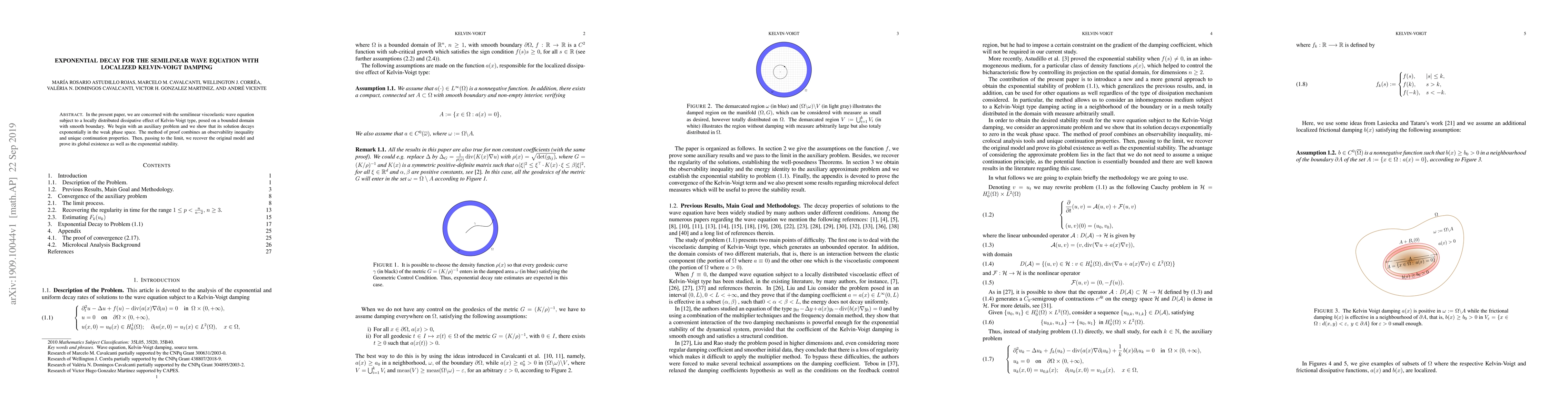 In the present paper, we are concerned with the semilinear viscoelastic wave equation subject to a locally distributed dissipative effect of Kelvin-Voigt type, posed on a bounded domain with smooth boundary. We begin with an auxiliary problem and we show that its solution decays exponentially in the weak phase space. The method of proof combines an observability inequality and unique continuation properties. Then, passing to the limit, we recover the original model and prove its global existence as well as the exponential stability.