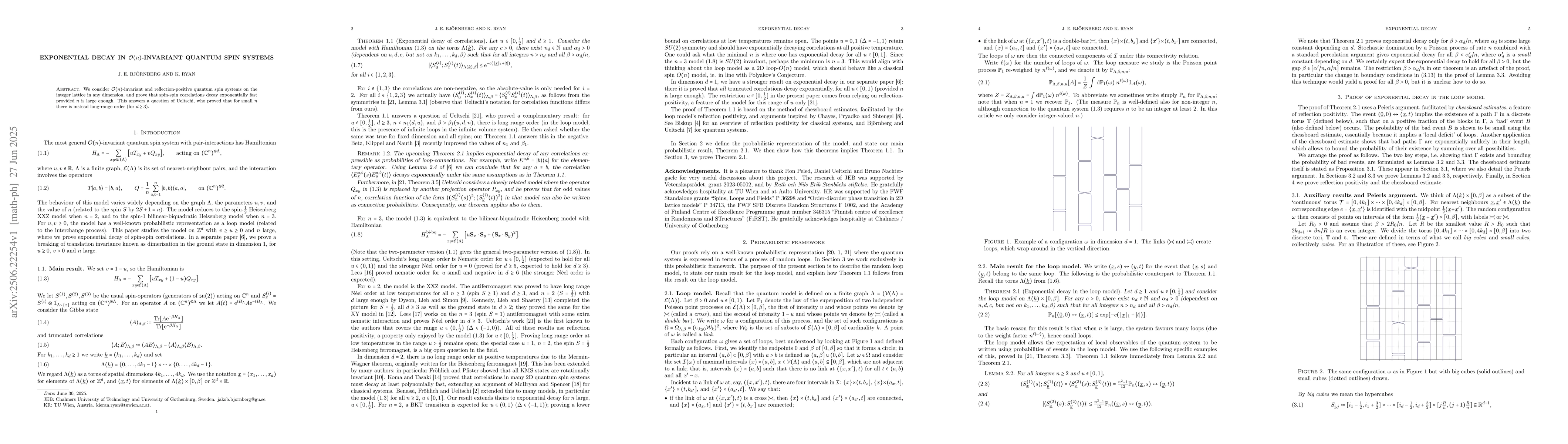 We consider $O(n)$-invariant and reflection-positive quantum spin systems on the integer lattice in any dimension, and prove that spin-spin correlations decay exponentially fast provided n is large enough. This answers a question of Ueltschi, who proved that for small n there is instead long-range order (for d at least 3).