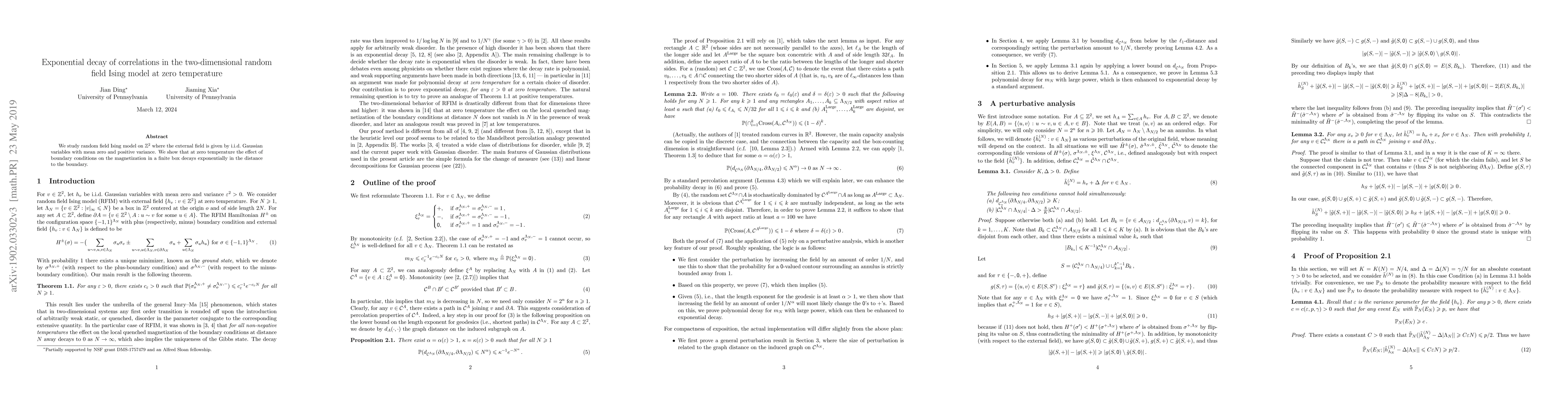 Summary: This paper investigates the two-dimensional random field Ising model at zero temperature, demonstrating that the influence of boundary conditions on magnetization decays exponentially with distance from the boundary. The external field consists of independent identically distributed Gaussian variables.