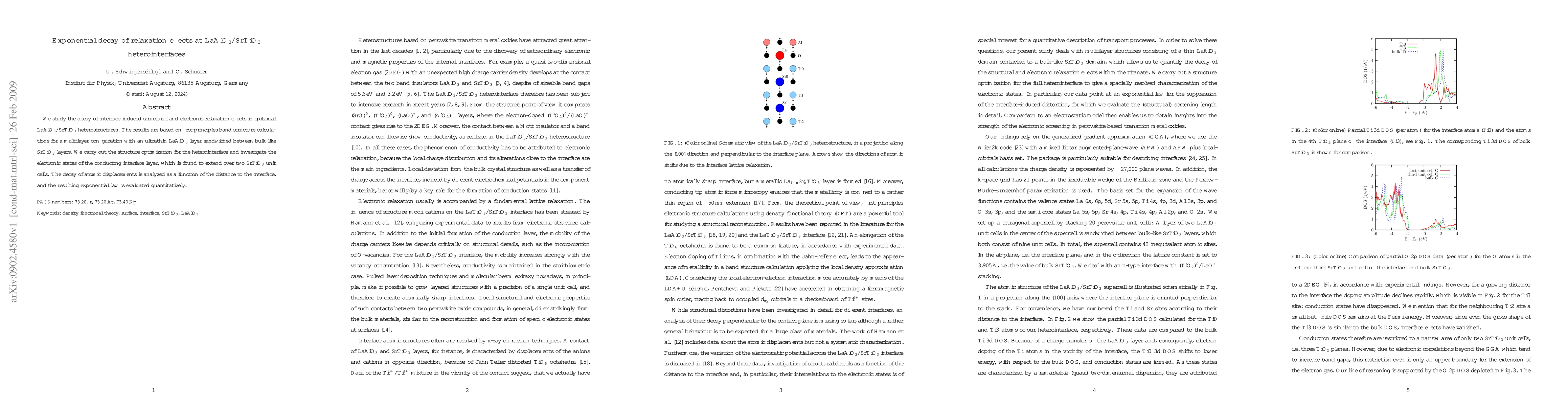 This research investigates the exponential decay of structural and electronic relaxation effects at the LaAlO3/SrTiO3 heterointerface using first-principles calculations. The study finds that the conducting interface layer extends over two SrTiO3 unit cells, and the decay of atomic displacements follows an exponential law with quantitative evaluation.