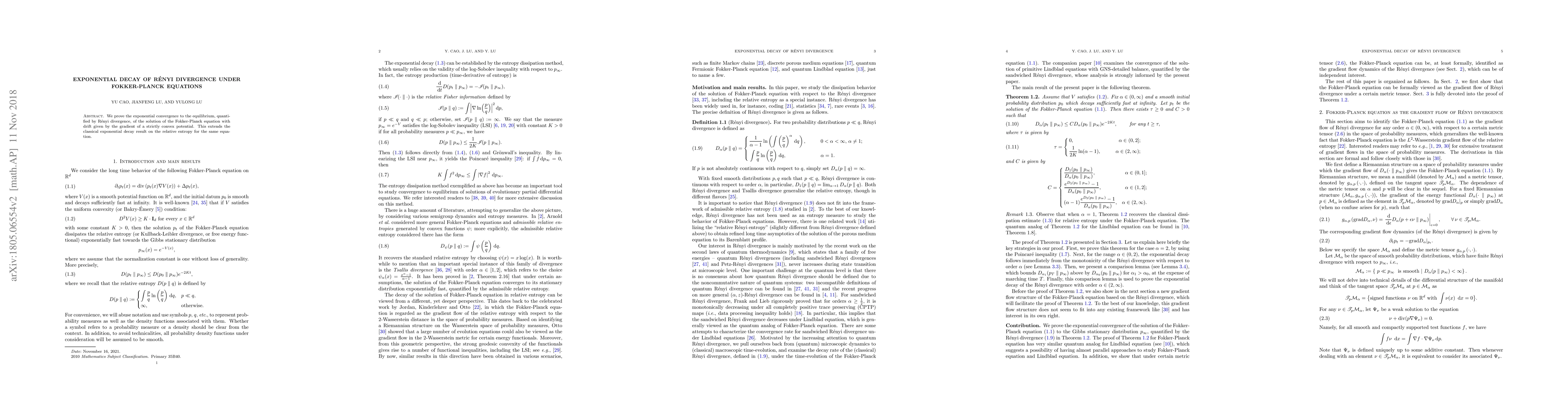 This paper demonstrates the exponential decay of Rényi divergence for solutions of Fokker-Planck equations driven by strictly convex potential gradients, extending classical results on relative entropy. The findings provide a refined understanding of convergence to equilibrium.