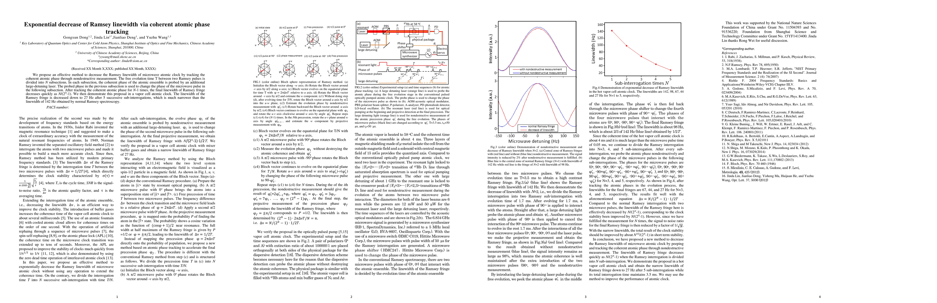 This research introduces a method to significantly narrow the frequency linewidth of atomic clocks by continuously tracking and adjusting the atomic phase during measurements. The technique, demonstrated in a vapor cell clock, reduces the linewidth from 142 Hz to 27 Hz, enhancing clock precision.