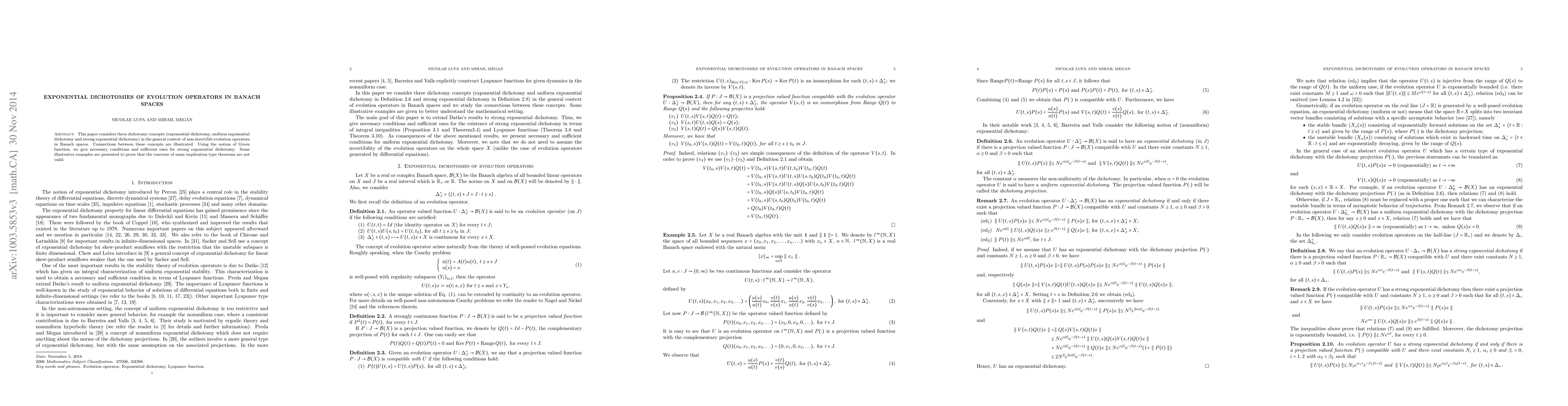 This paper considers three dichotomy concepts (exponential dichotomy, uniform exponential dichotomy and strong exponential dichotomy) in the general context of non-invertible evolution operators in Banach spaces. Connections between these concepts are illustrated. Using the notion of Green function, we give necessary conditions and sufficient ones for strong exponential dichotomy. Some illustrative examples are presented to prove that the converse of some implication type theorems are not valid.