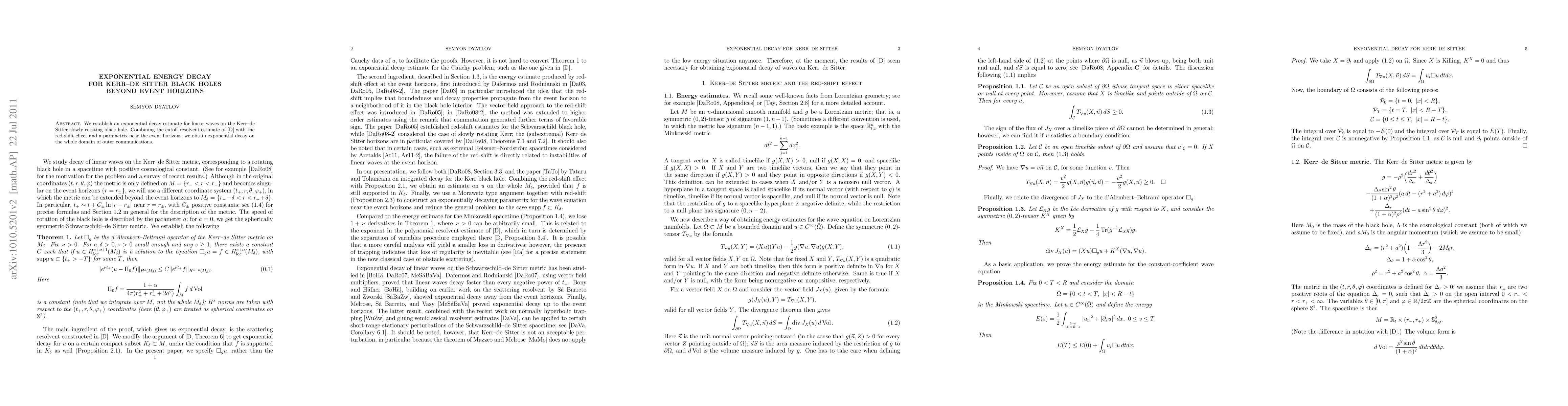 We establish an exponential decay estimate for linear waves on the Kerr-de Sitter slowly rotating black hole. Combining the cutoff resolvent estimate of arXiv:1003.6128 with the red-shift effect and a parametrix near the event horizons, we obtain exponential decay on the whole space.
